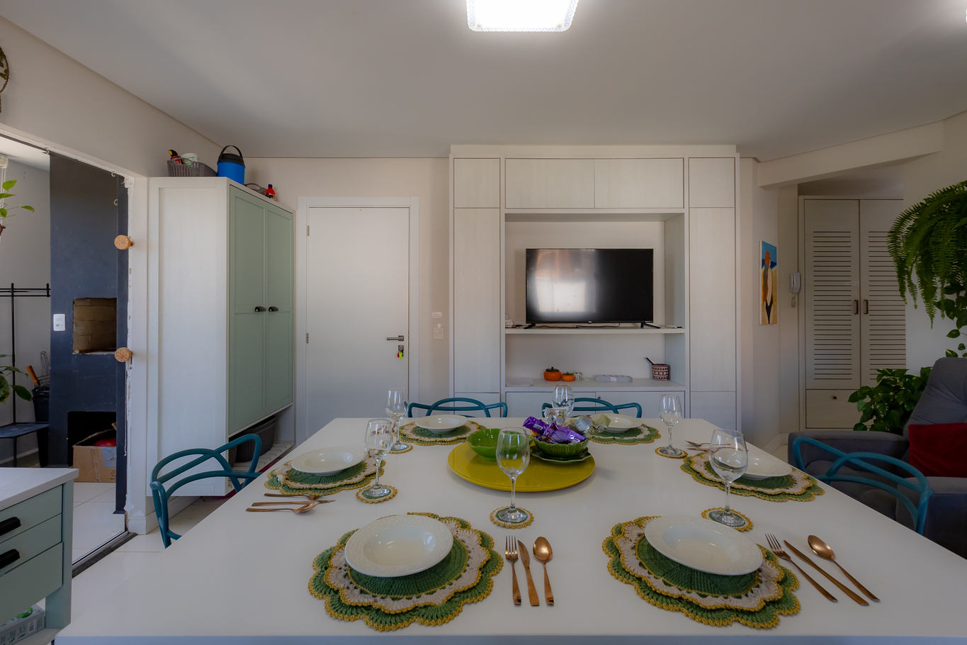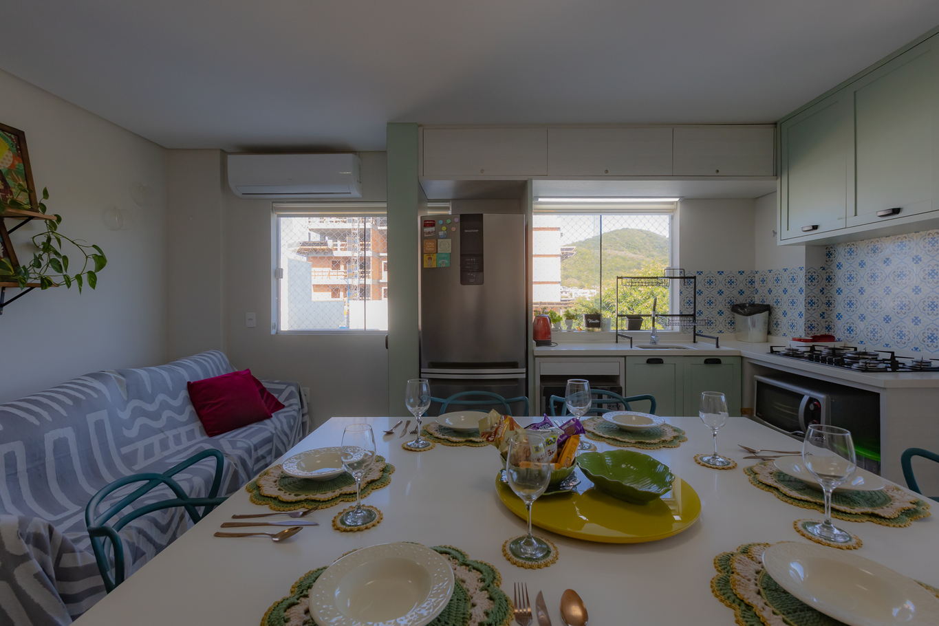 - Sala Aconchegante: Com ar-condicionado, cadeira, mesa de jantar, poltrona, sofá-cama de casal (ideal para 1 adulto ou 2 crianças) e Smart TV