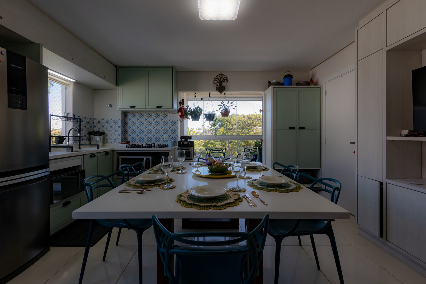 - Cozinha Completa: Equipada com pratos, copos, talheres, panelas, pano de prato, freezer, fogão, forno, geladeira, liquidificador, microondas, mixer, multiprocessador, panela elétrica, torradeira, chaleira, coador, garrafa térmica, jarra d’água, jogo americano/porta-copos e utensílios de cozinha(exceto óleo e sal) - Balcão e mesa de refeições na cozinha