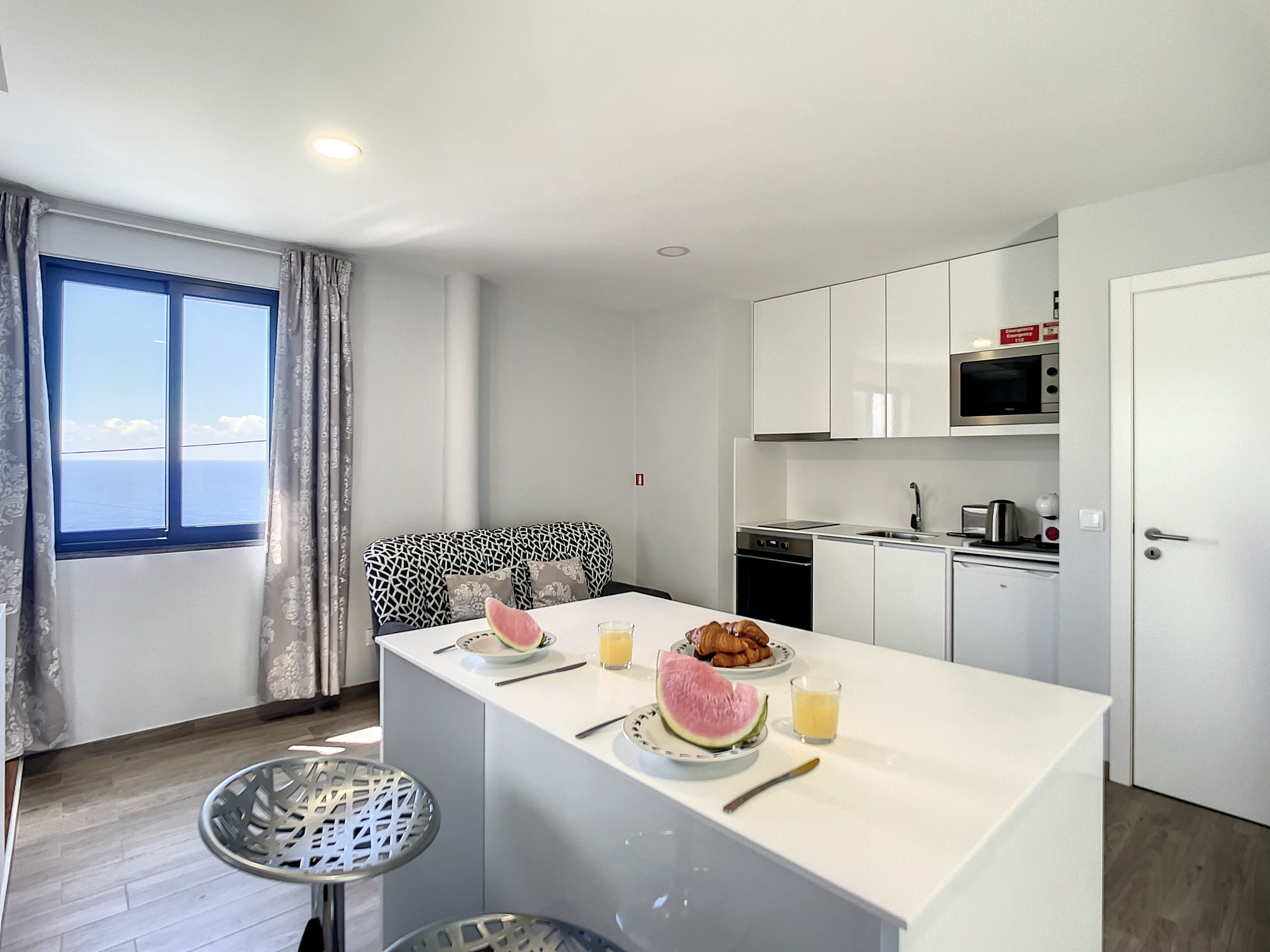 Acomodação de 50 m² acolhedor e moderno, com vistas para o mar.