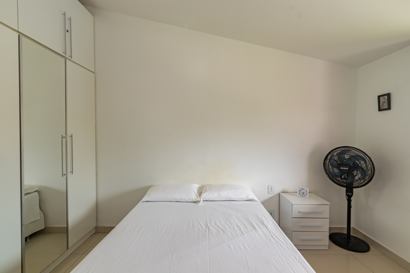 - No quarto há 1 cama de casal e armário