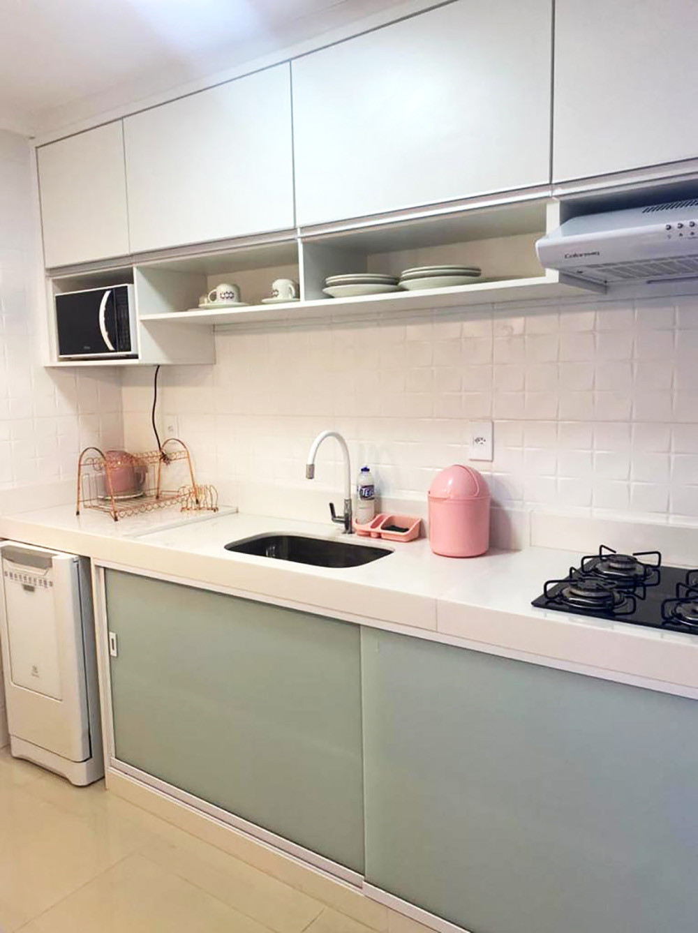 - A cozinha oferece fogão, geladeira, liquidificador, micro-ondas, máquina de lavar louça e torradeira