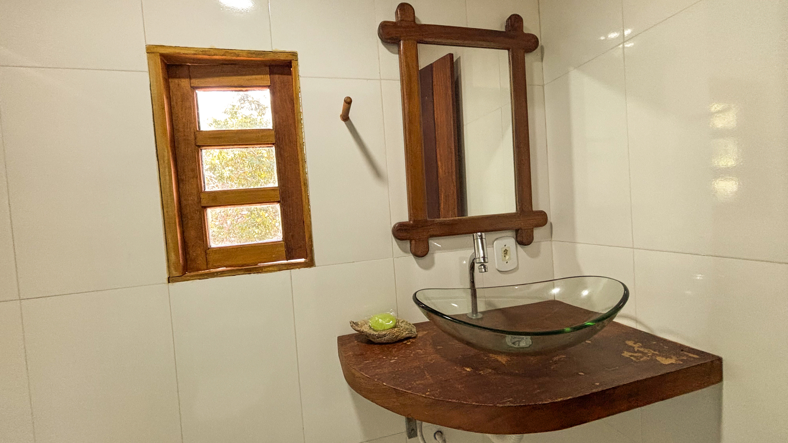 - Suíte 2: conta com 2 camas de solteiro, ar-condicionado e banheiro privativo com chuveiro elétrico e box de vidro