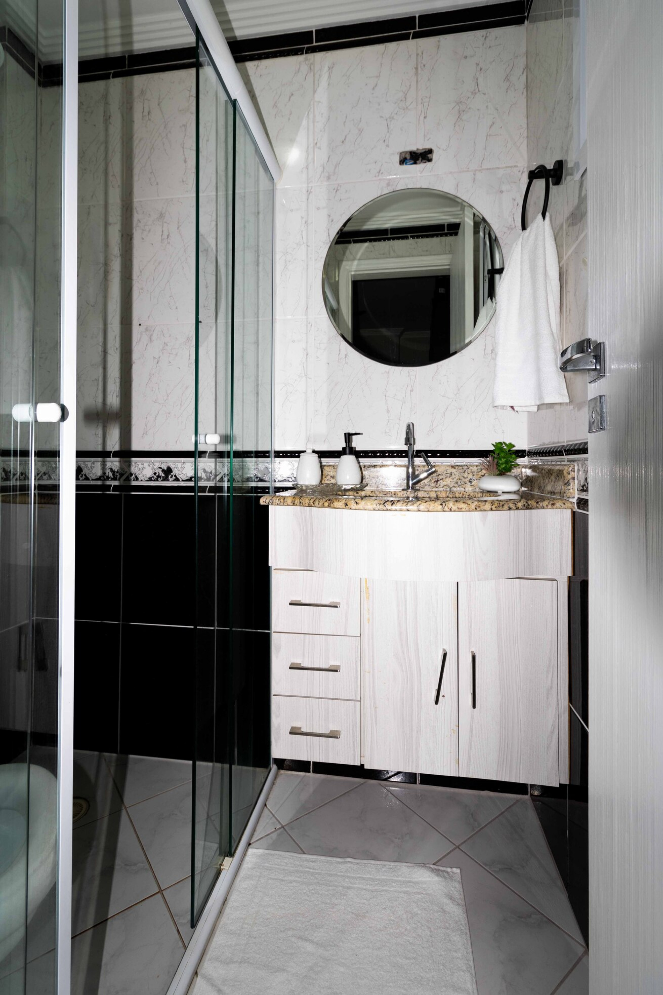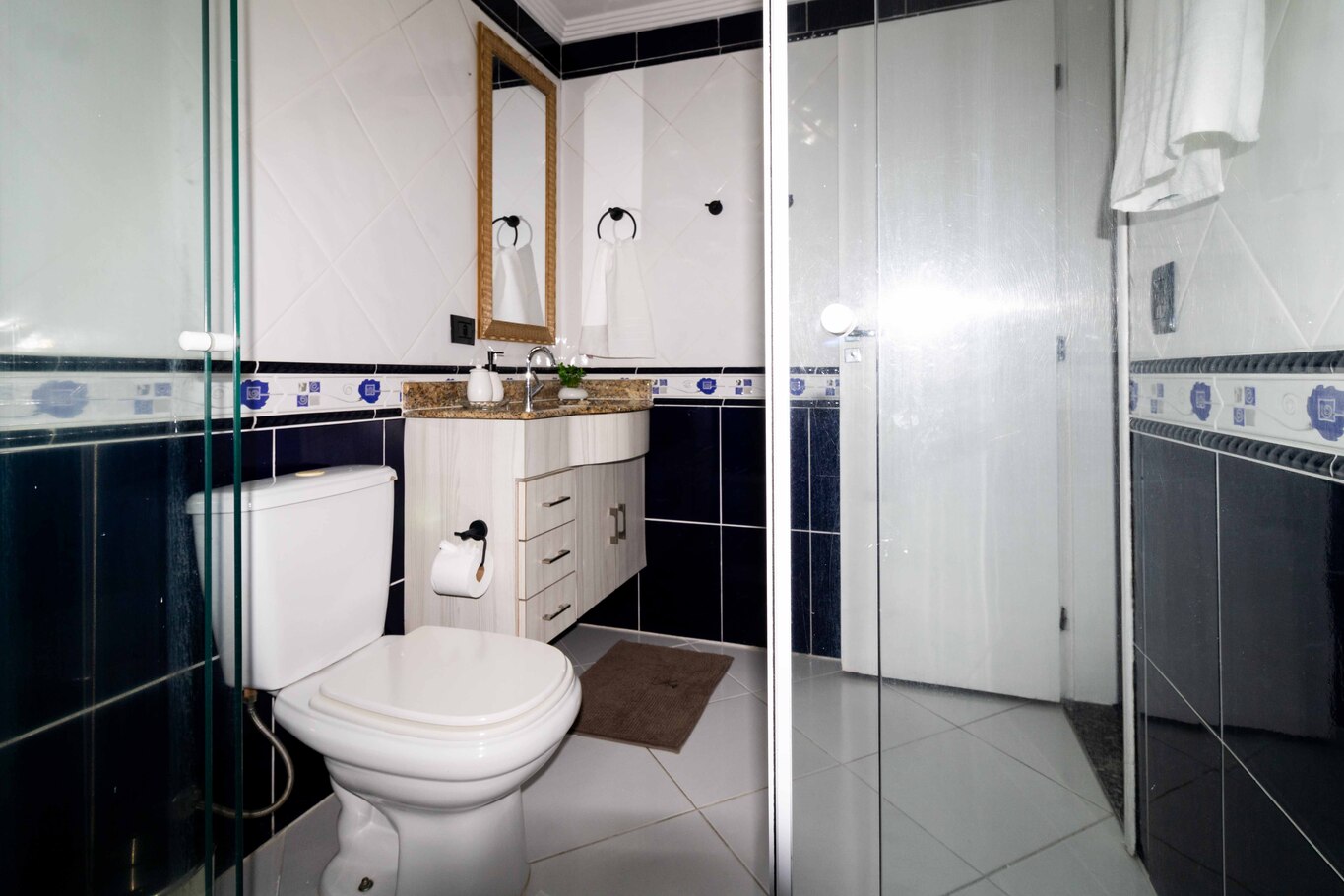 - As suítes possuem chuveiro elétrico, chapinha, secador de cabelo e box de vidro