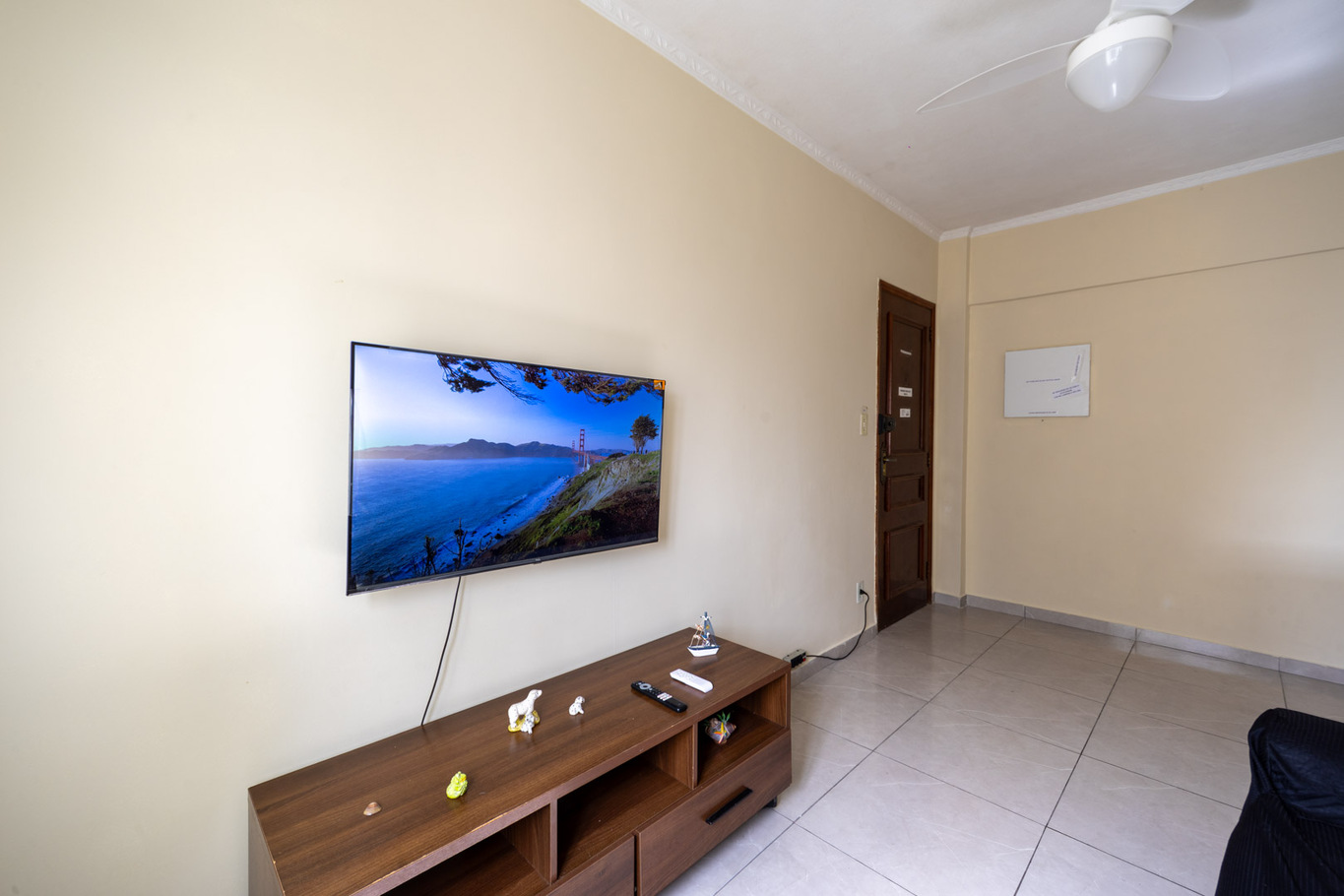 Desfrute de dias inesquecíveis neste apartamento em Praia Grande, a poucos passos da areia! Com espaço para até 5 hóspedes, o imóvel oferece garagem privativa, elevador, Wi-Fi do condomínio e fechadura eletrônica. Relaxe na sala com smart TV, prepare refeições completas na cozinha equipada ou aprecie a vista lateral do mar. Para momentos de lazer, o condomínio dispõe de terraço panorâmico e churrasqueira compartilhada mediante reserva. Conforto e praticidade no litoral!