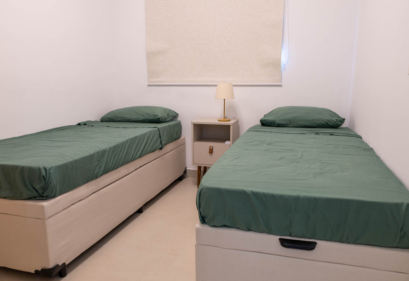 - No quarto 2 há 2 camas de solteiro