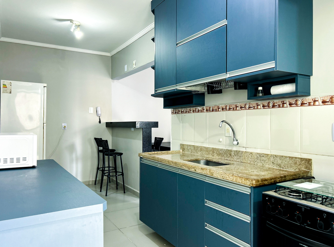 - A cozinha é equipada com todos os utensílios necessários para suas refeições, incluindo cafeteira, fritadeira, fogão, geladeira, liquidificador, micro-ondas, chaleira e garrafa térmica