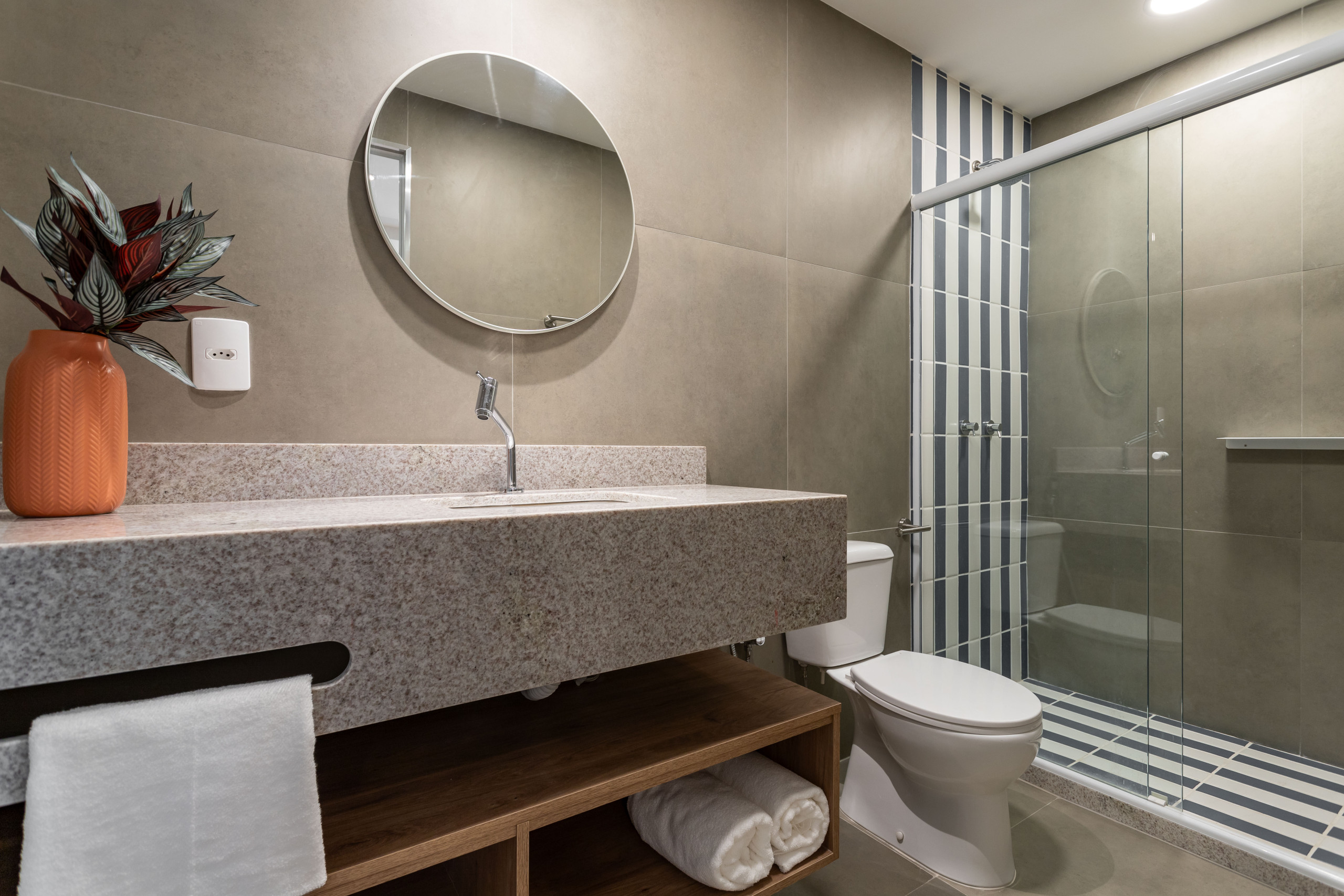 ⚠️ As tomadas da acomodação são de 220V. Notebooks e carregadores de celulares são bivolts (Recomendamos verificar antes do uso)