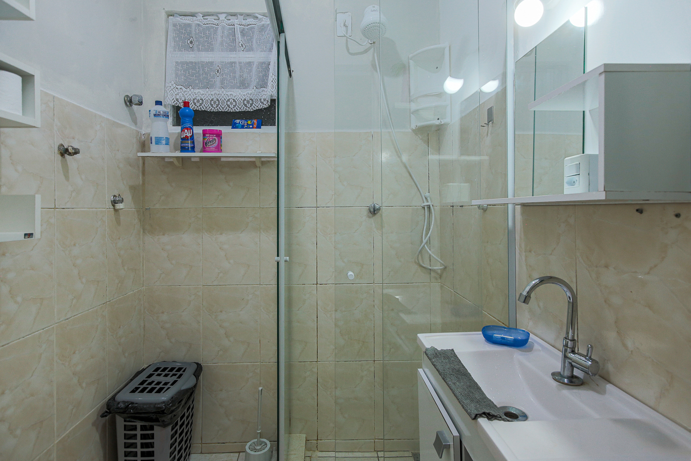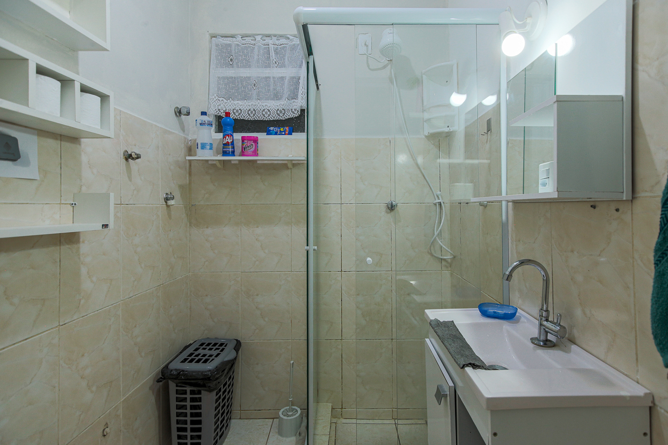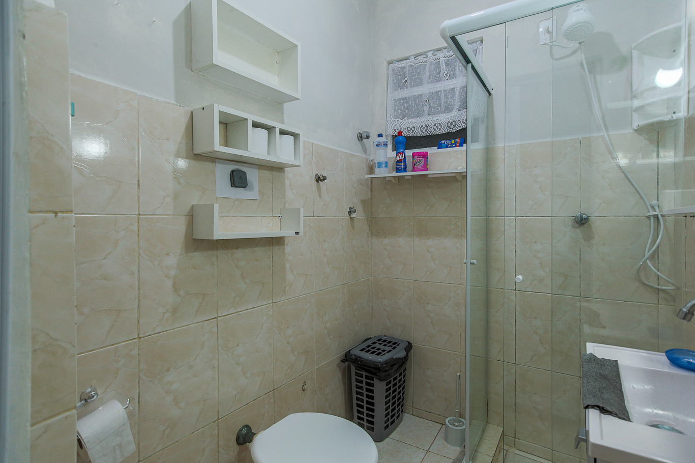 - Banheiro possui chuveiro elétrico e box de vidro