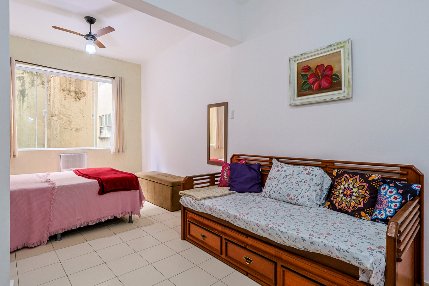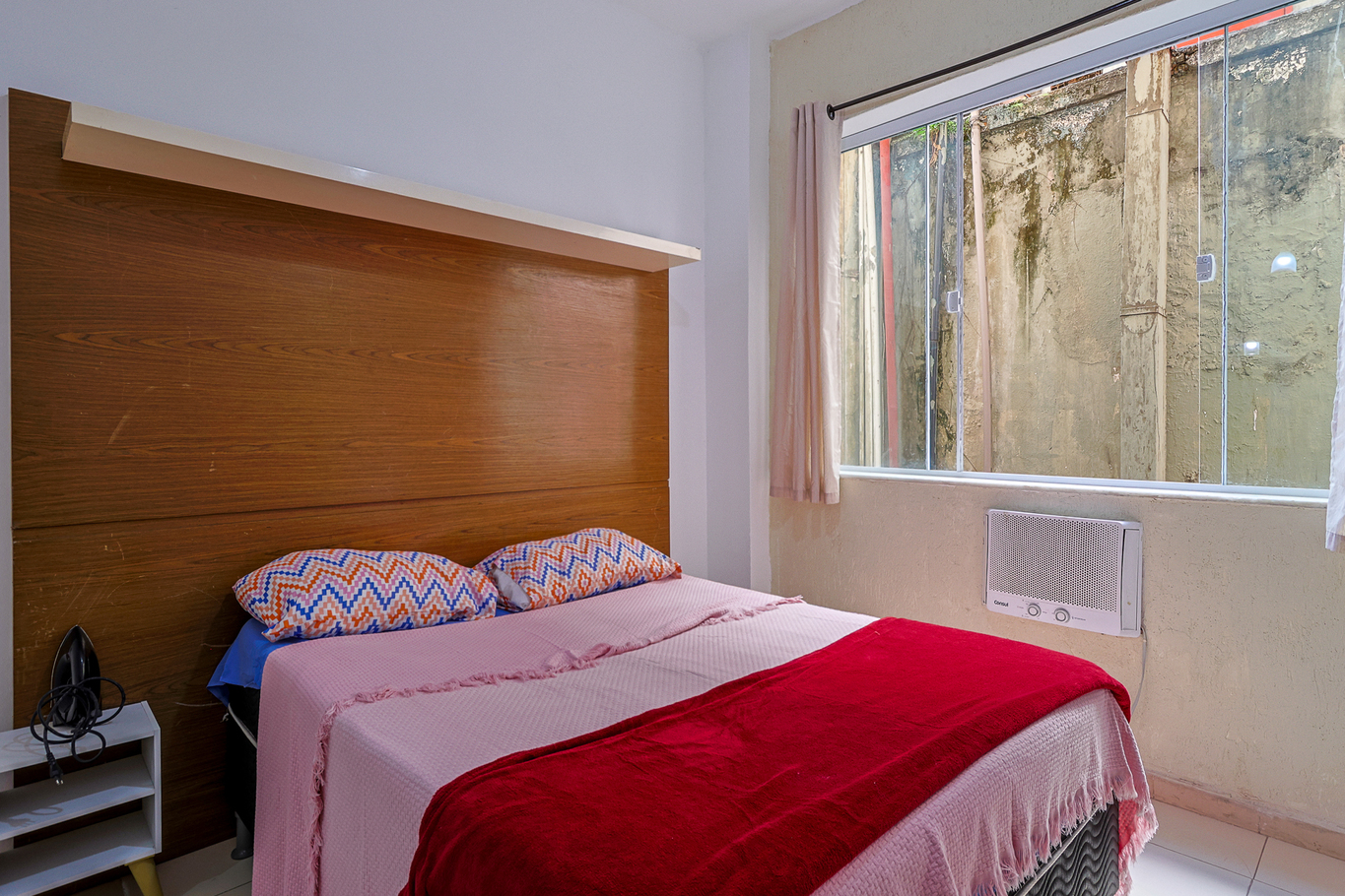 - 1 cama de casal confortável para seu descanso, ar-condicionado e ventilador de teto