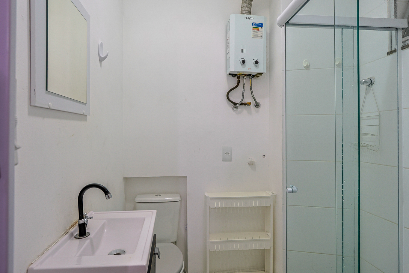 - Banheiro privativo com chuveiro a gás e box de vidro/acrílico
