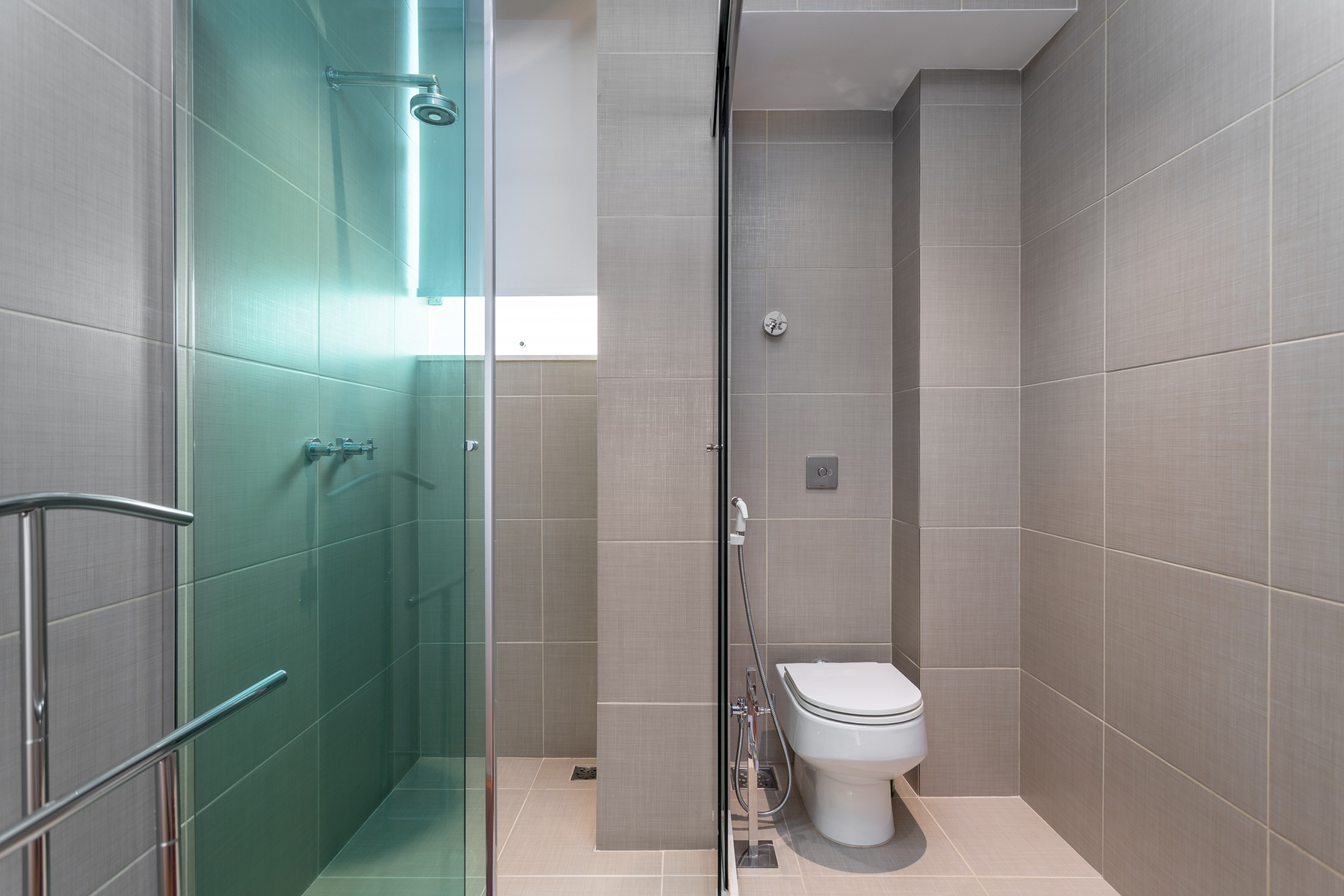 Nenhum degrau entre o chuveiro e o chão do banheiro