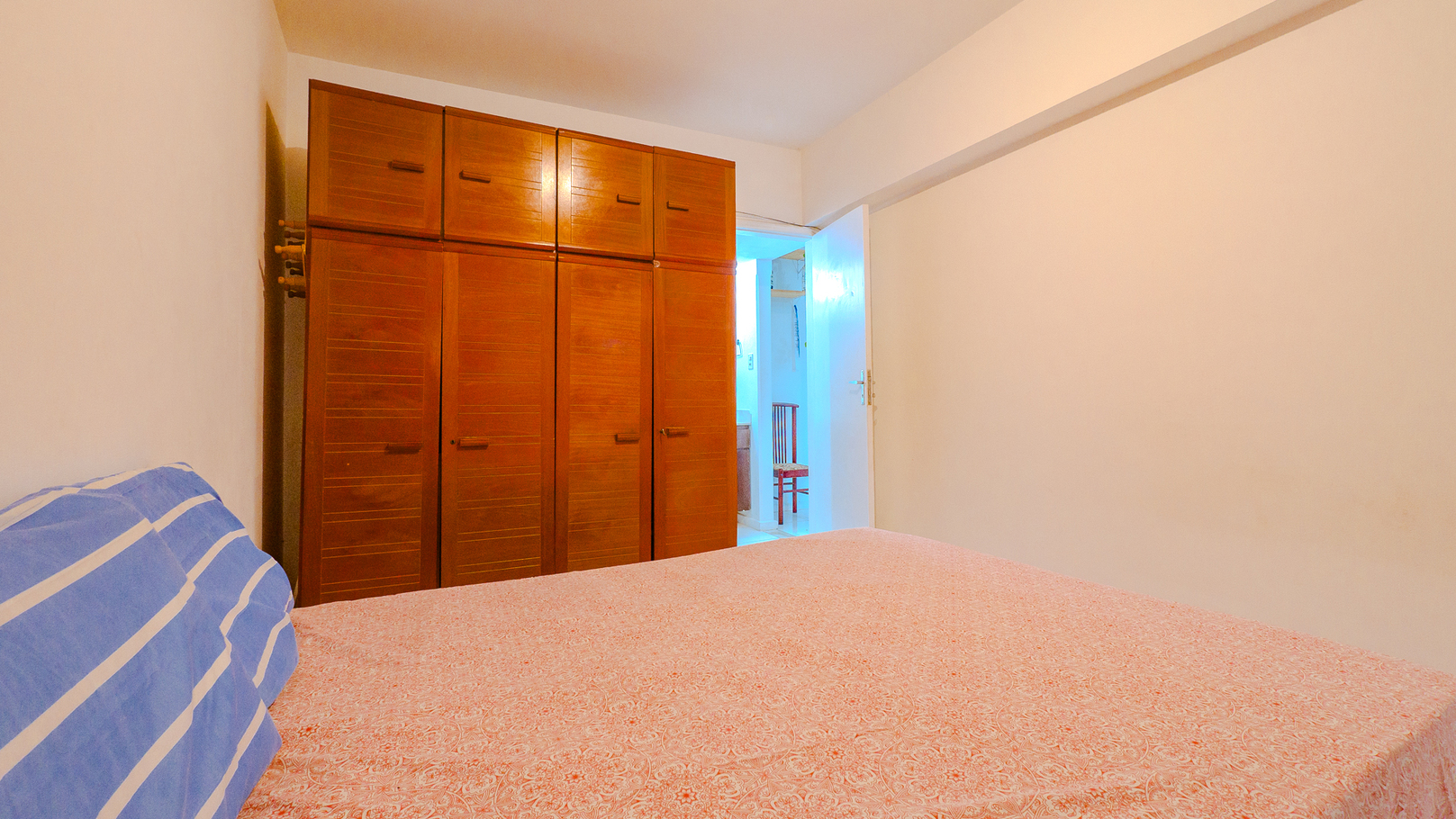 - Quarto 2 com cama de solteiro, cômoda e ventilador