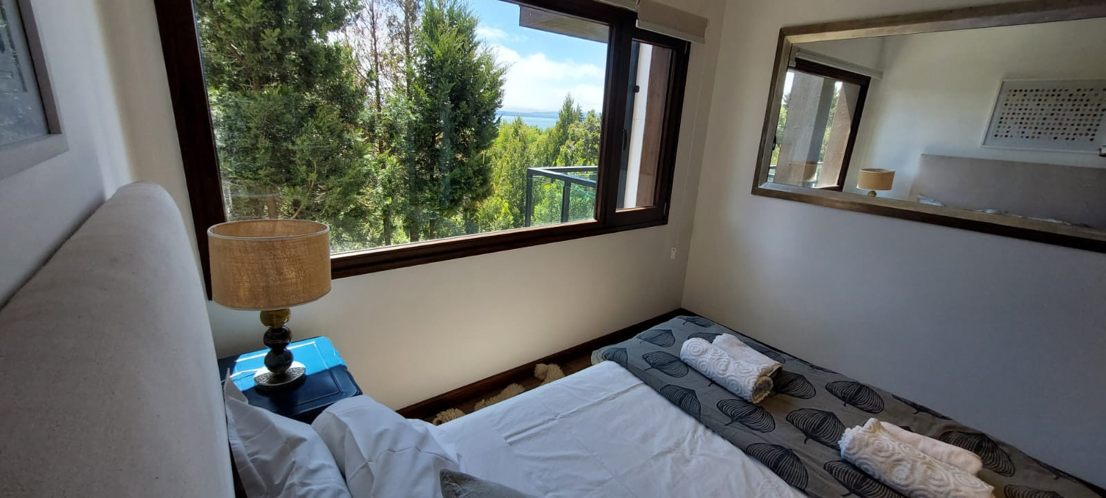 Bem-vindo ao nosso encantador apartamento de um quarto com vistas deslumbrantes do Lago Nahuel Huapi. Localizado em um bairro privado fechado com restaurante, piscina aquecida ao ar livre/coberta e parque verde, oferece uma experiência única.