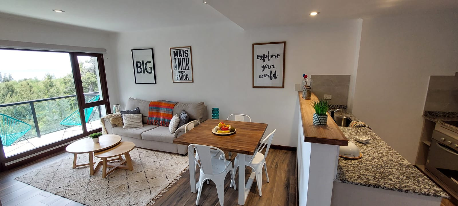 A sala principal abriga uma cozinha totalmente equipada, uma área de jantar e uma sala de estar aconchegante. Uma pequena varanda com duas cadeiras oferece a oportunidade de aproveitar a vista. Com sua própria vaga de estacionamento estrategicamente localizada perto da entrada principal e um elevador para fácil acesso ao prédio, experimente o luxo de um hotel com a flexibilidade de um apartamento totalmente equipado. Faça deste espaço sua casa enquanto explora as maravilhas de Bariloche!