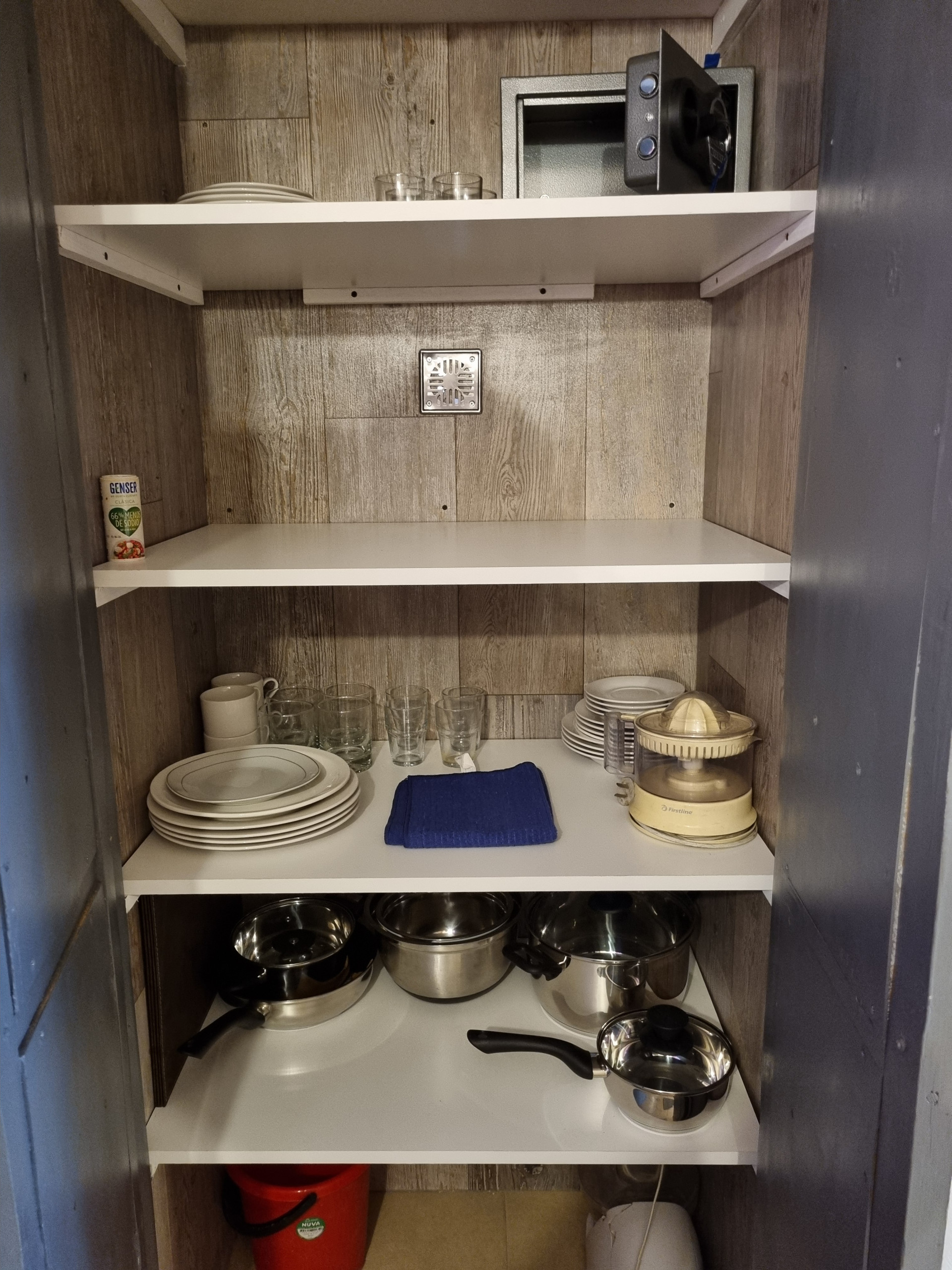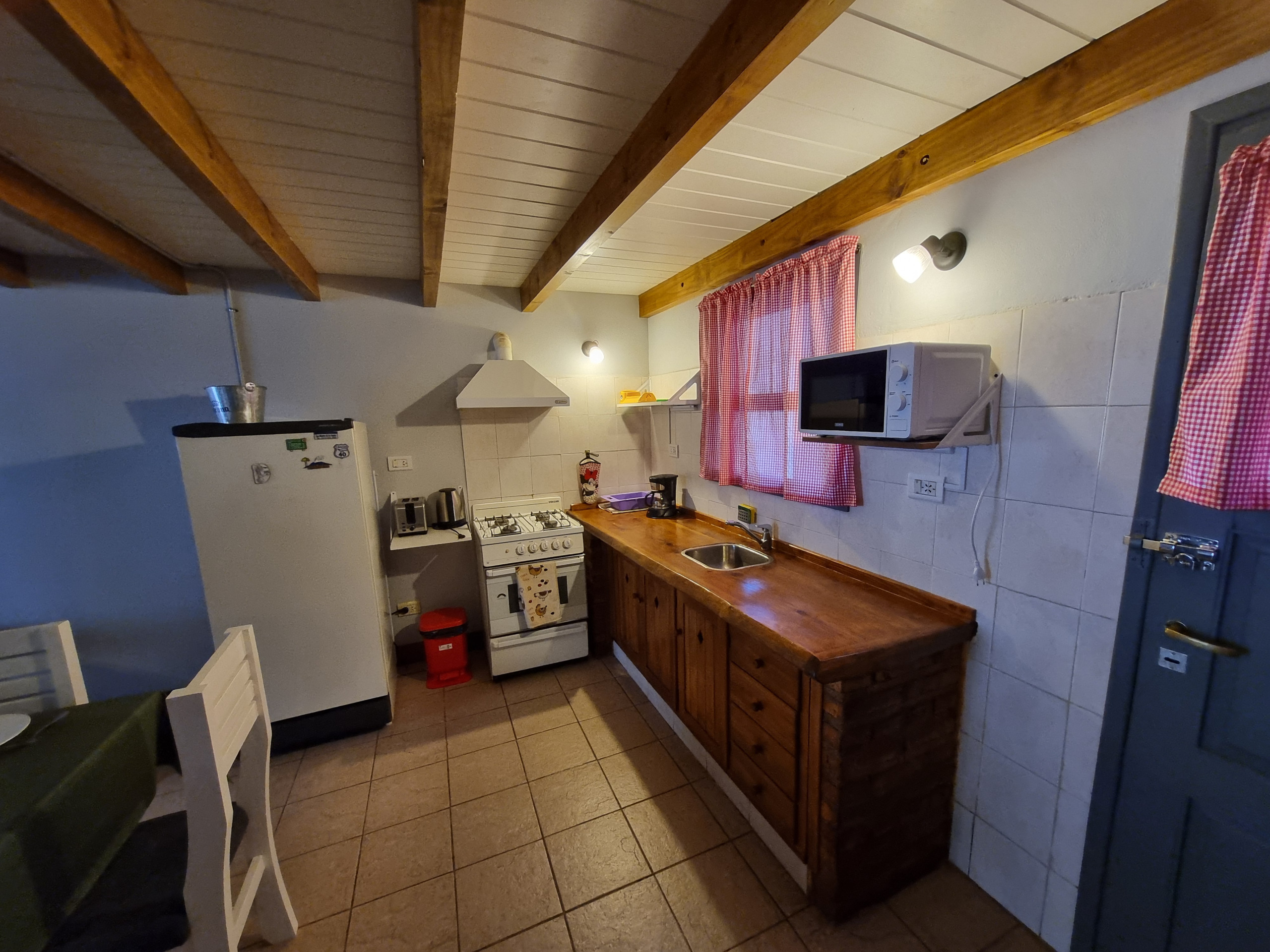 A cozinha americana, de gás, está equipada com geladeira, micro-ondas, forno, louça/talheres, utensílios/cozinha, cafeteira, torradeira e jarro elétrico.