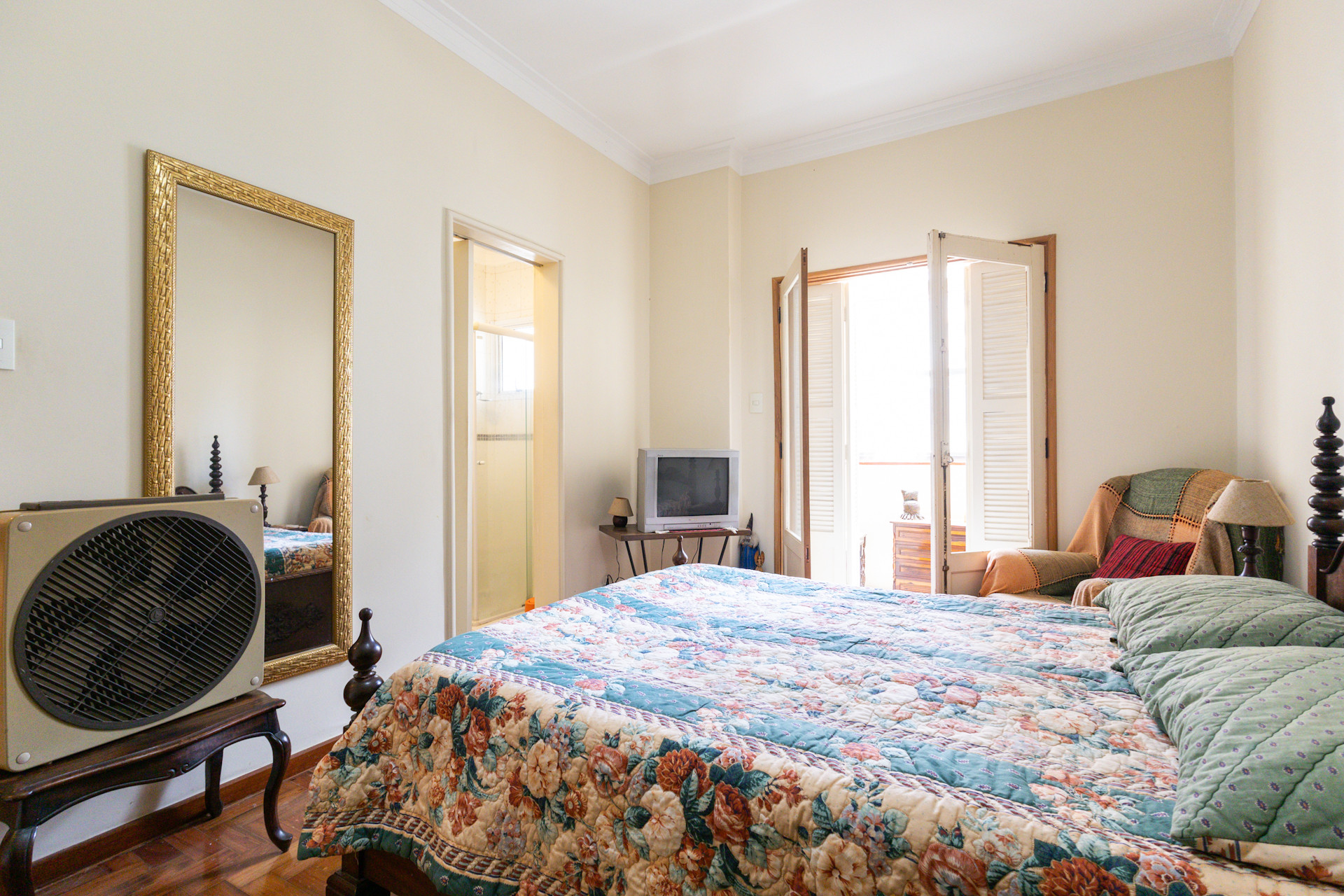 - Na suíte você encontra uma cama de casal, poltrona, abajur, armário embutido, travesseiros e varanda fechada com cadeiras