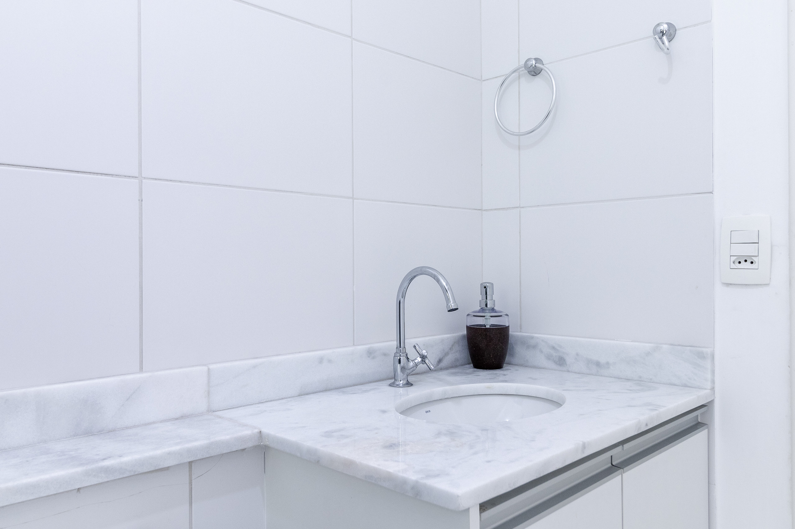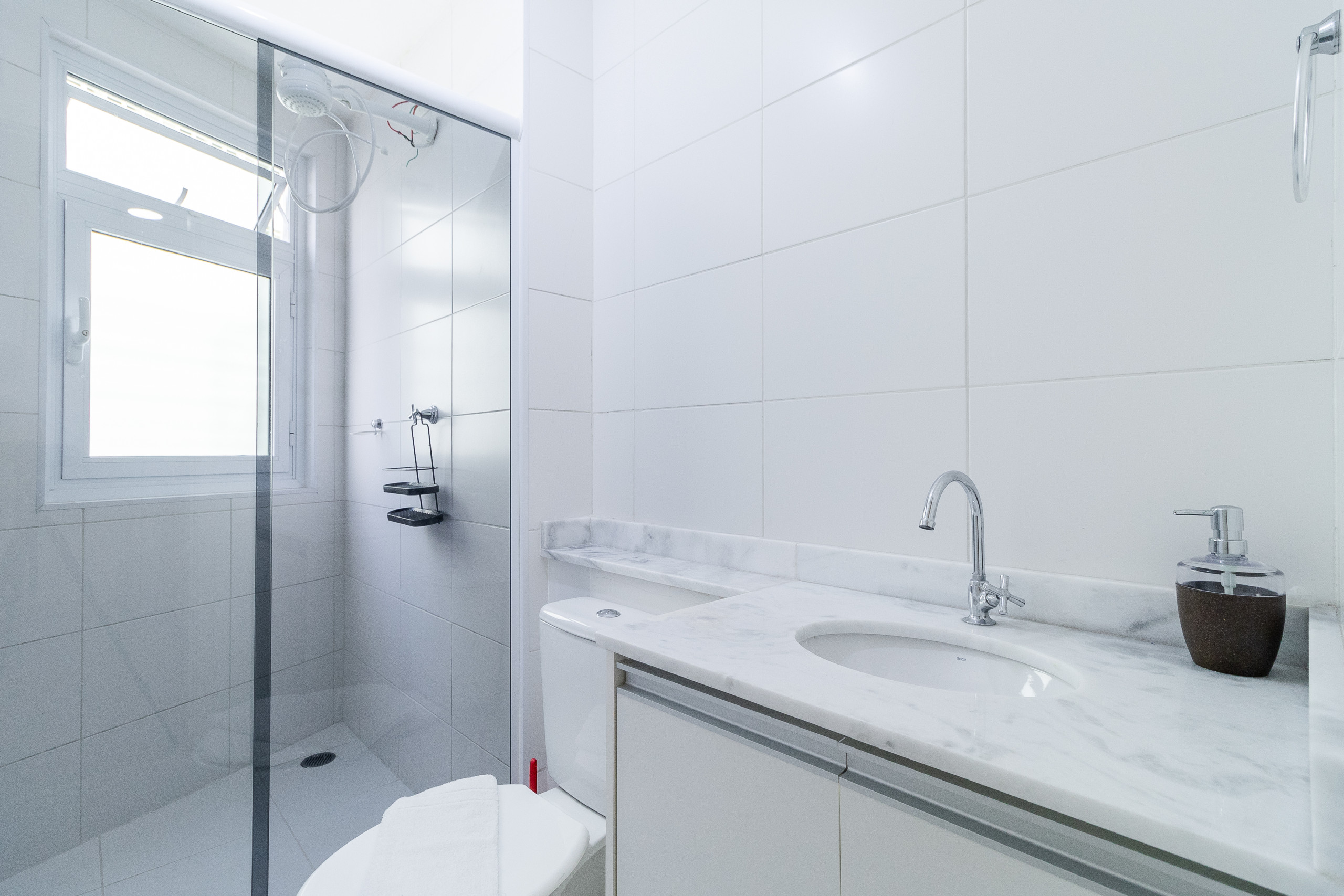 banheiro completo. Oferecemos 1 toalha de banho por hóspede, 1 toalha de rosto e 1 piso por apartamento (toalhas e piso extra solicitados durante a estadia tem custo adicional).