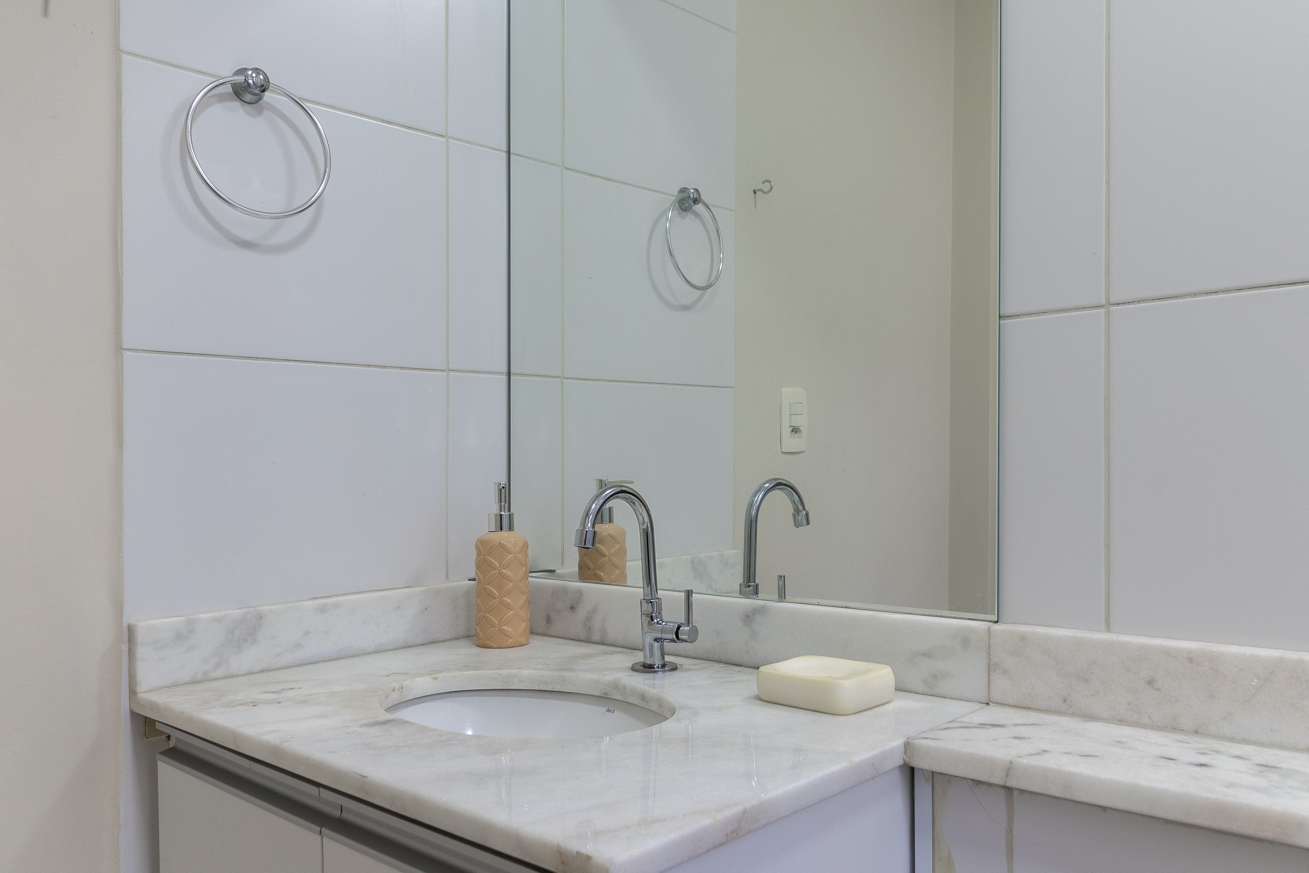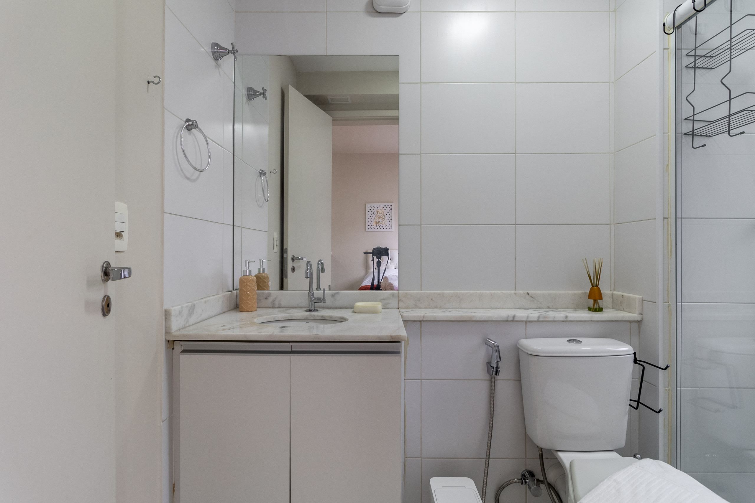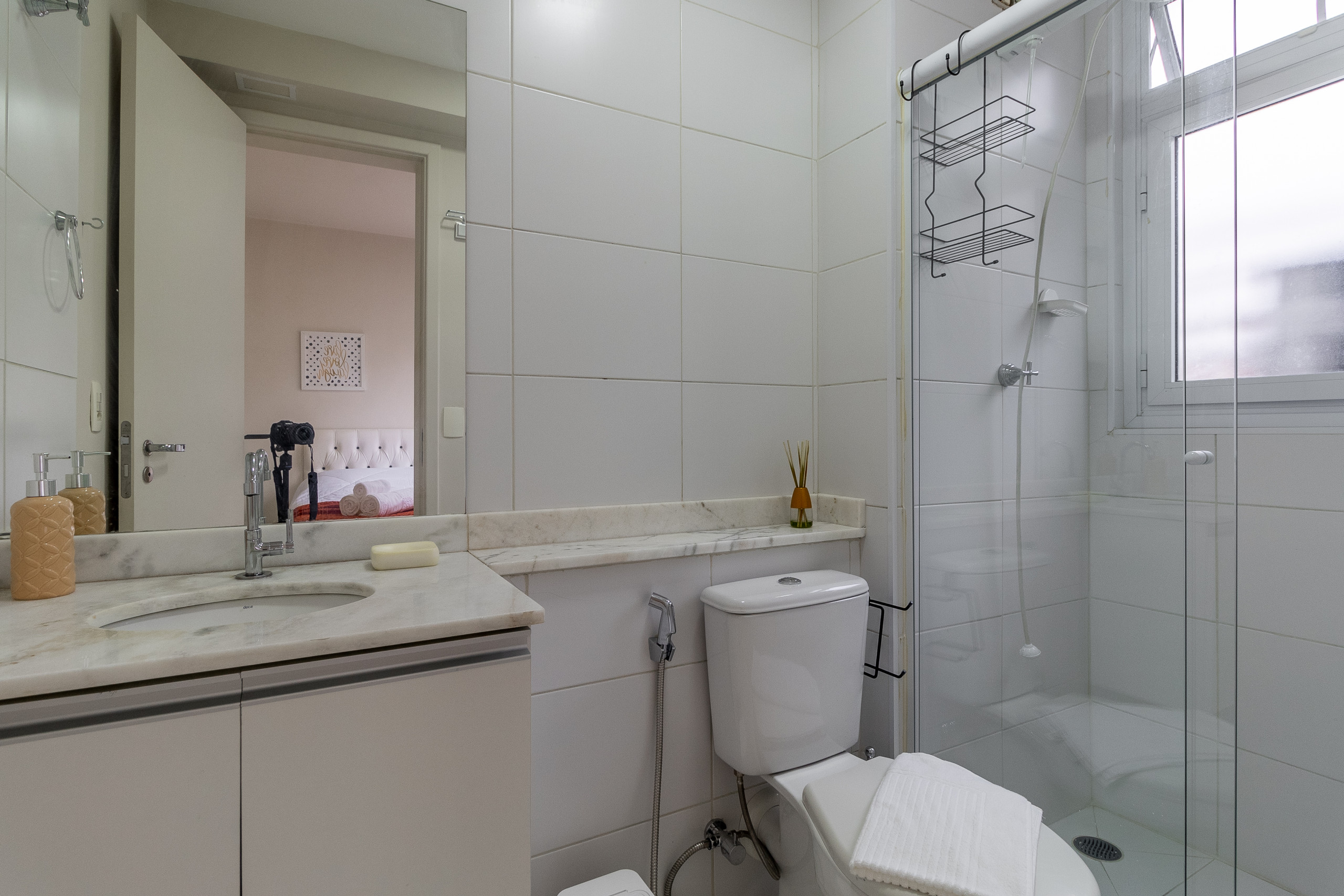banheiro completo. Oferecemos 1 toalha de banho por hóspede, 1 toalha de rosto e 1 piso por apartamento (toalhas e piso extra solicitados durante a estadia tem custo adicional).