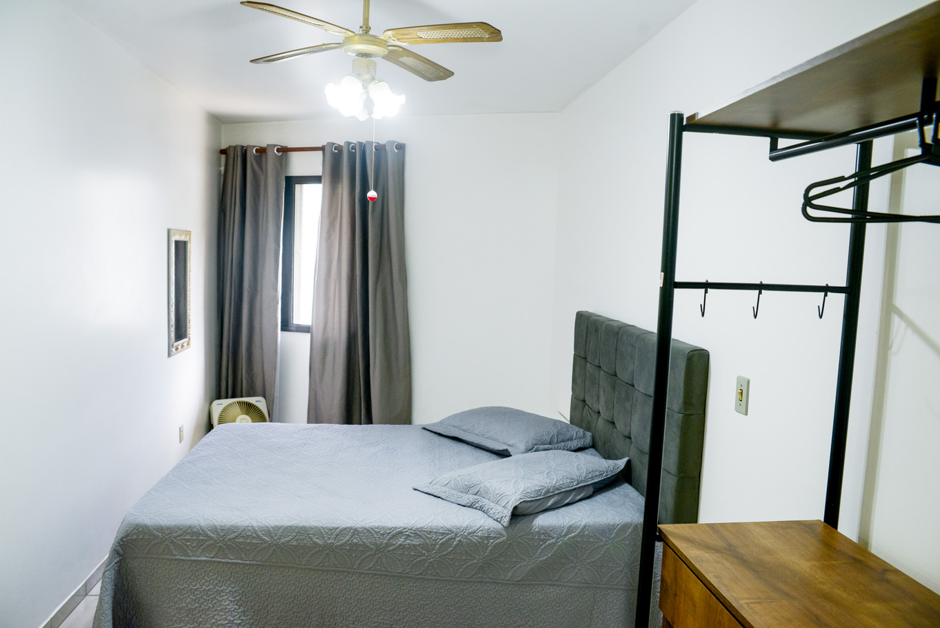 - Na suíte 1 há 1 cama de casal, ventilador de teto e 2 colchões extra