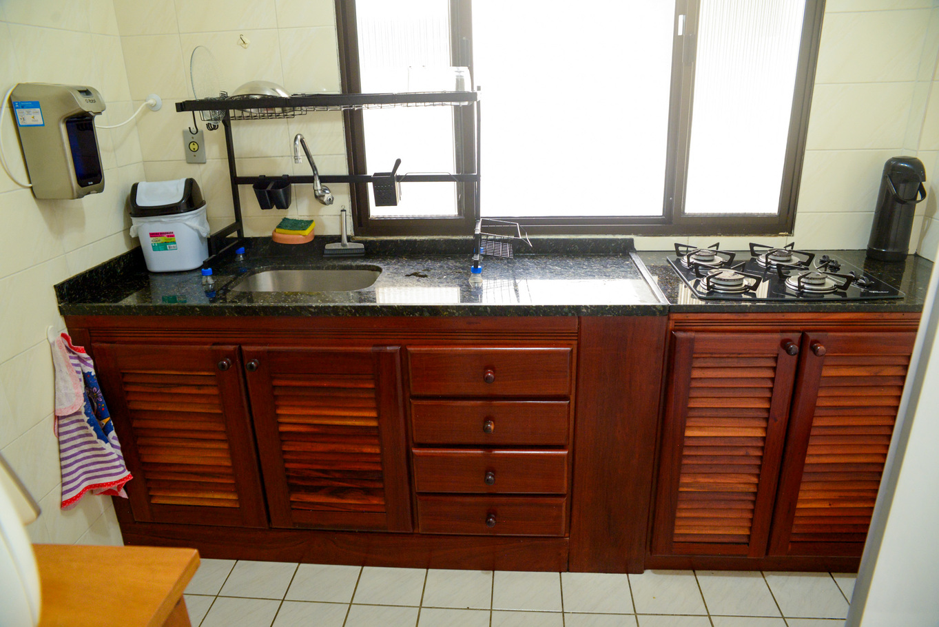 - A cozinha é equipada com todos os utensílios necessários para preparar ótimos pratos, incluindo fogão cooktop, geladeira, liquidificador, micro-ondas, fritadeira e utensílios básicos de cozinha, exceto sal, óleo e pimenta