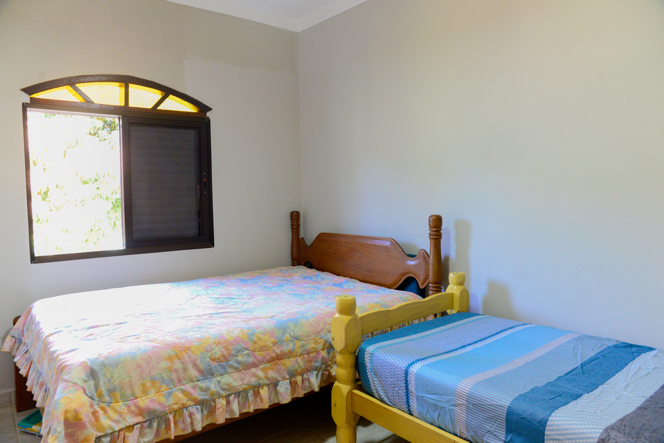 - Na suíte e no quarto há 1 cama de casal e 1 cama de solteiro (cada)