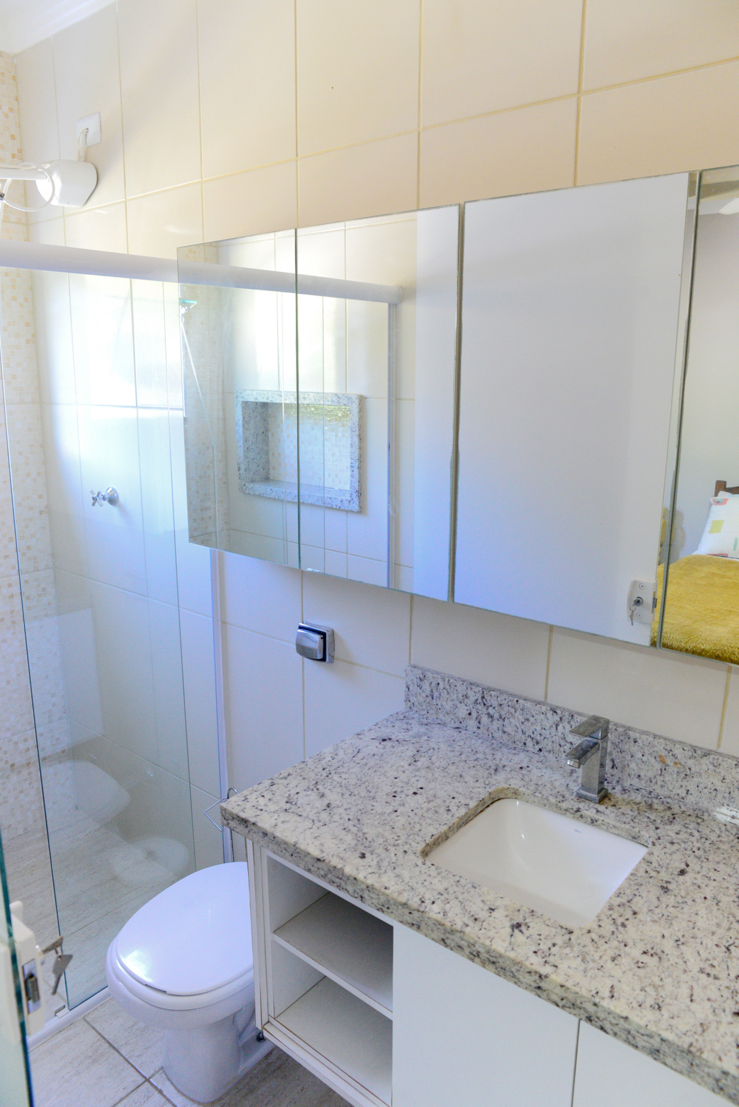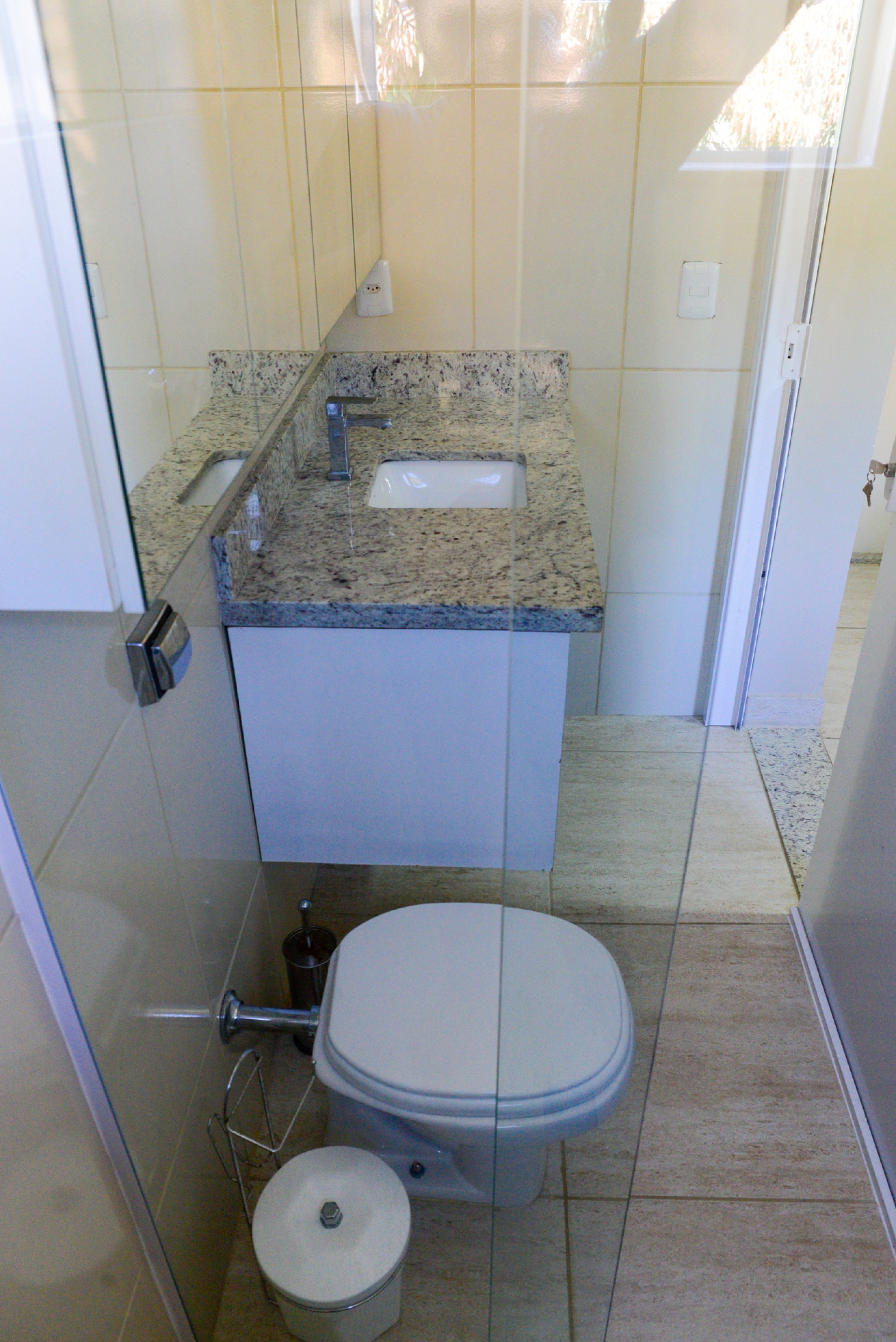 - Os banheiros possuem chuveiro elétrico e box de vidro