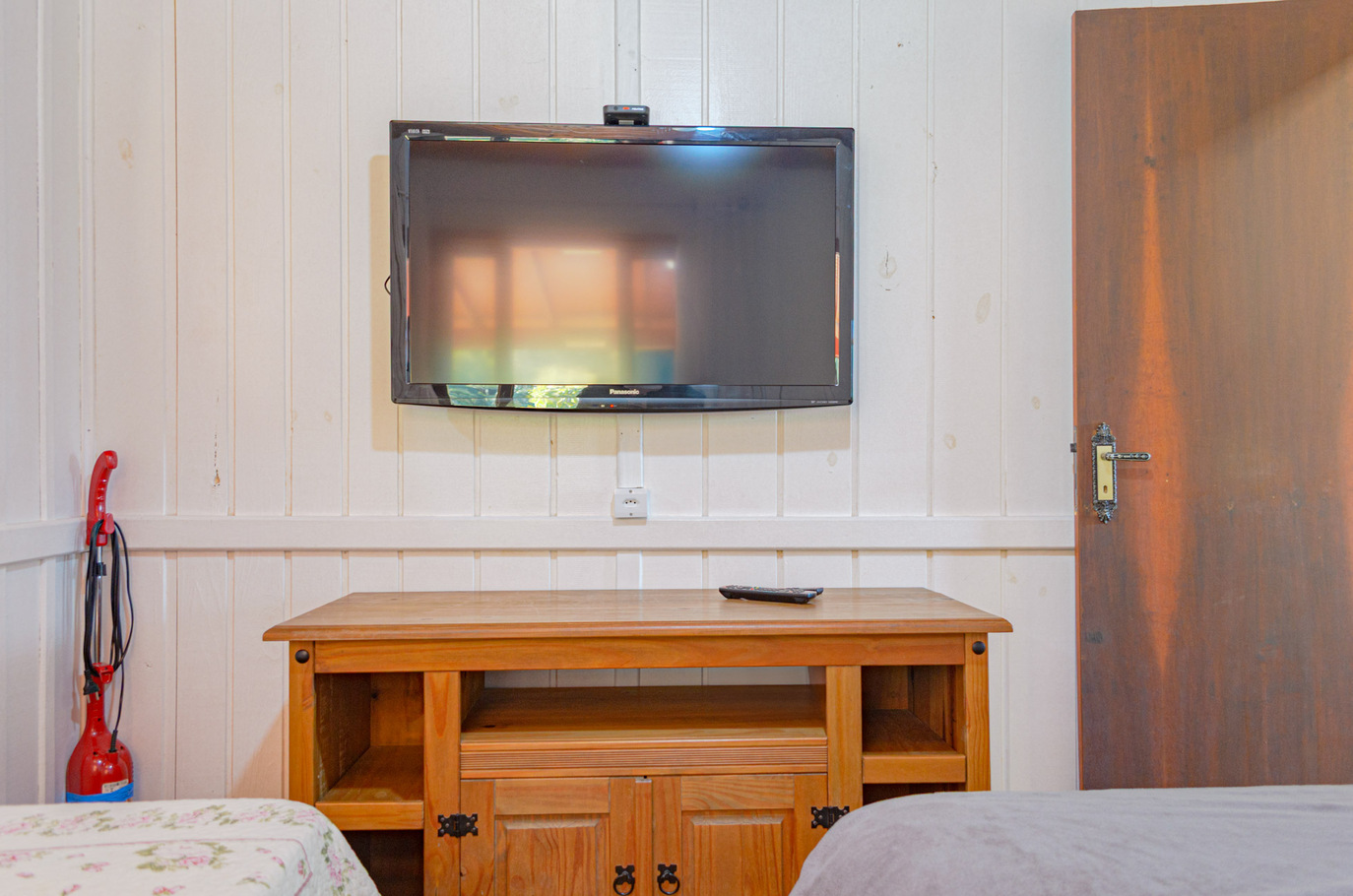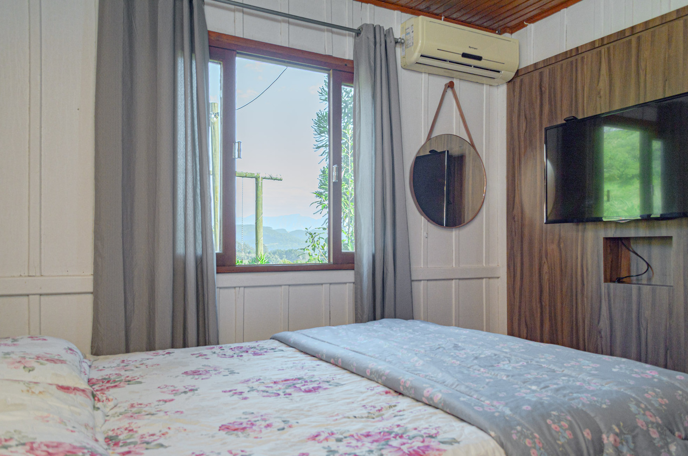 - Quarto 3 com cama de casal, ar-condicionado, armário e smart TV