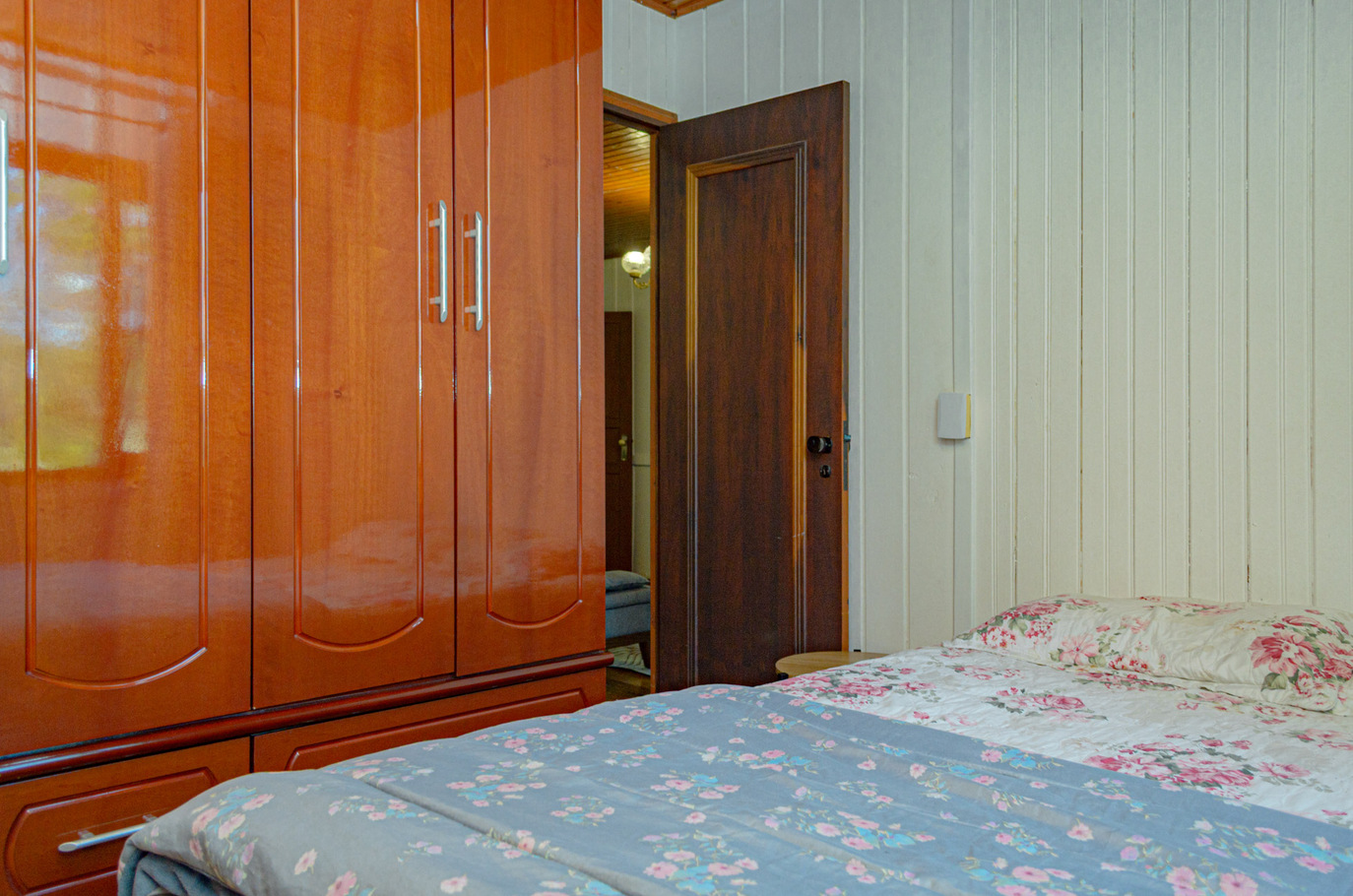- Quarto 4 com cama de casal, cama de solteiro auxiliar, ventilador de teto, armário e smart TV