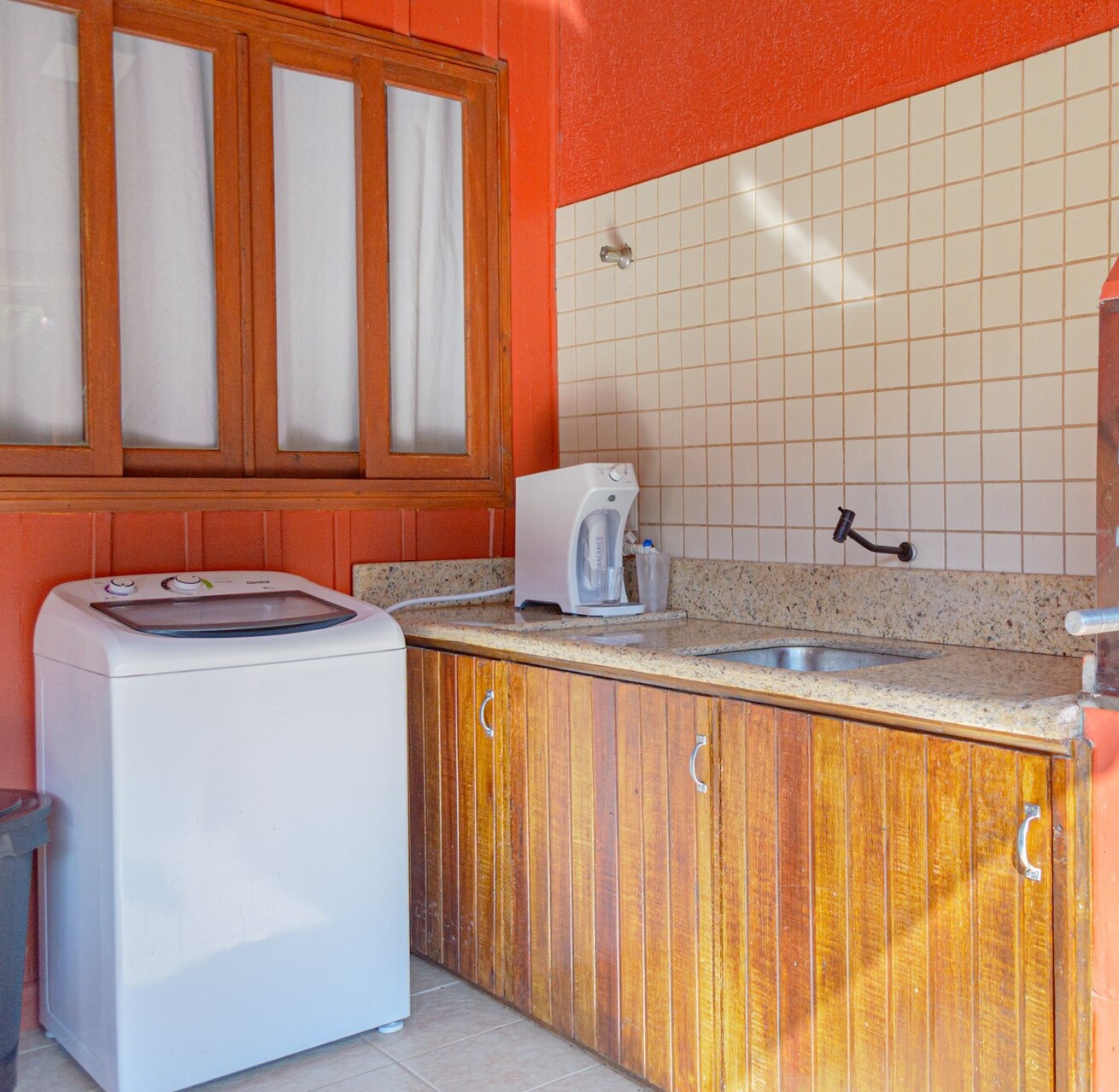 - Cozinha equipada com fogão, forno, geladeira, freezer, microondas, máquina de lavar louça, fogão a lenha, liquidificador, purificador de água, mesa com balcão e outros utensílio(exceto sal e óleo)