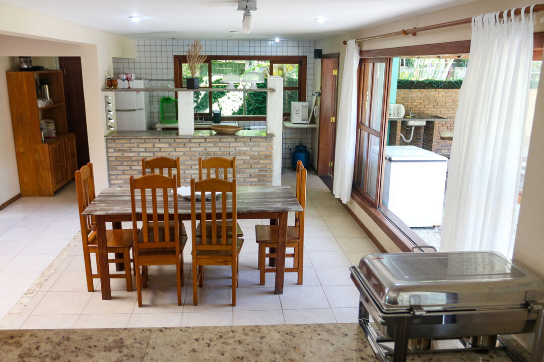 - A cozinha é equipada com todos os utensílios necessários para preparar suas refeições, incluindo freezer, fogão, forno, geladeira, liquidificador, micro-ondas, torradeira, balcão e mesa