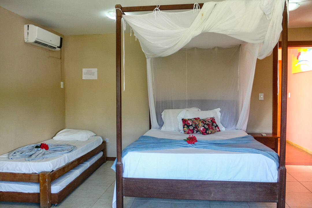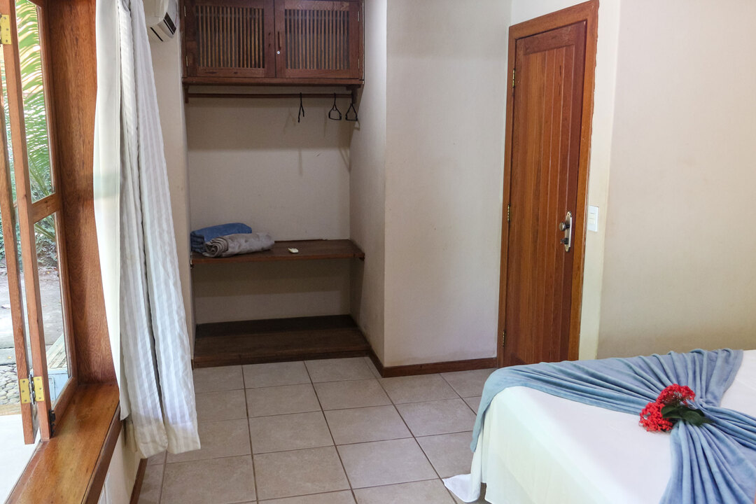 - Nos dormitórios você encontra armário, edredom / cobertor, protetor de colchão e TV. Nas suítes você encontra chuveiro com energia solar e box de vidro/acrílico