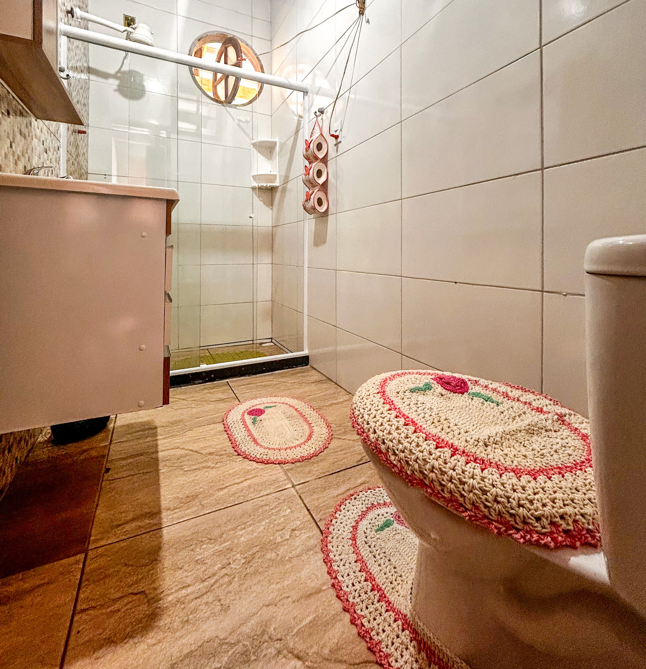 - O banheiro 1 é equipado com chuveiro elétrico e box de vidrex