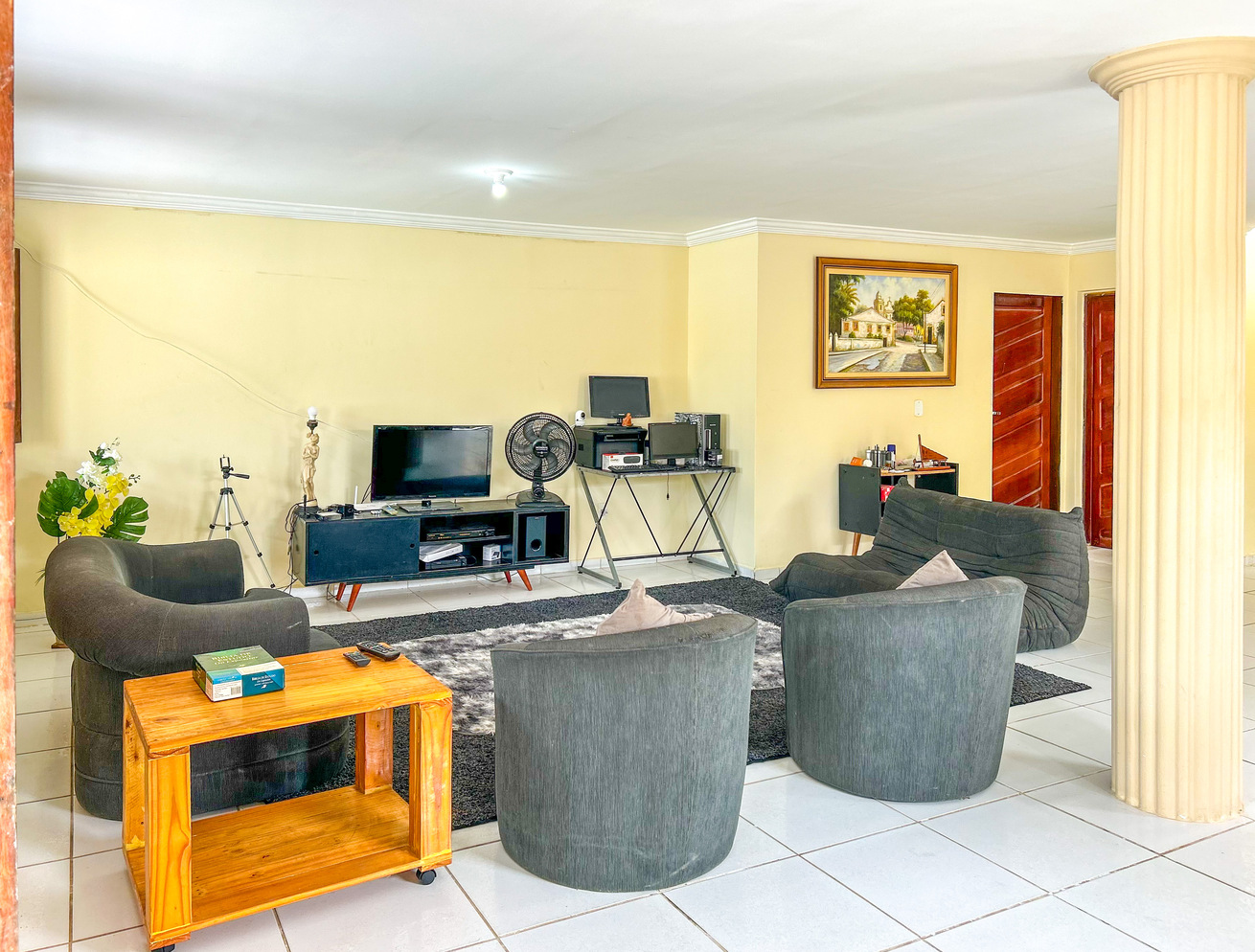 - A sala está equipada com cadeira, poltrona, sofá e TV