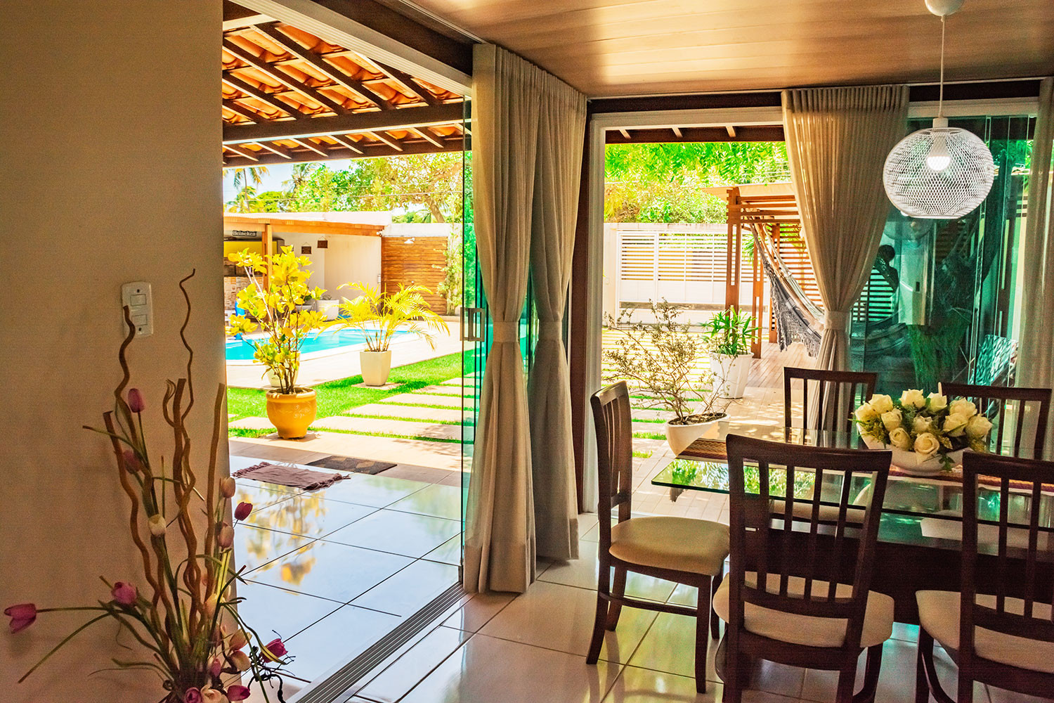 - O imóvel é dividido em casa principal e duas suítes externas anexas à casa, além de uma aconchegante sala de vidro na área externa