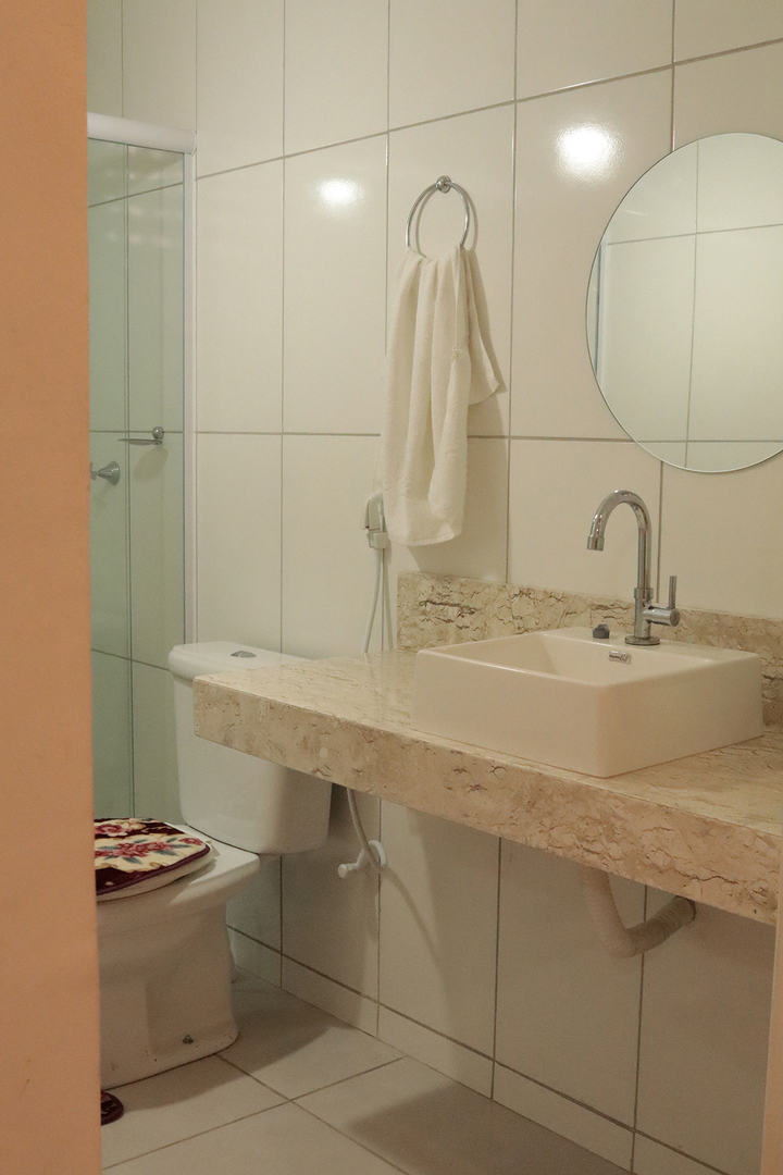 - O banheiro dispõe com chuveiro a gás e box de vidro/acrílico
