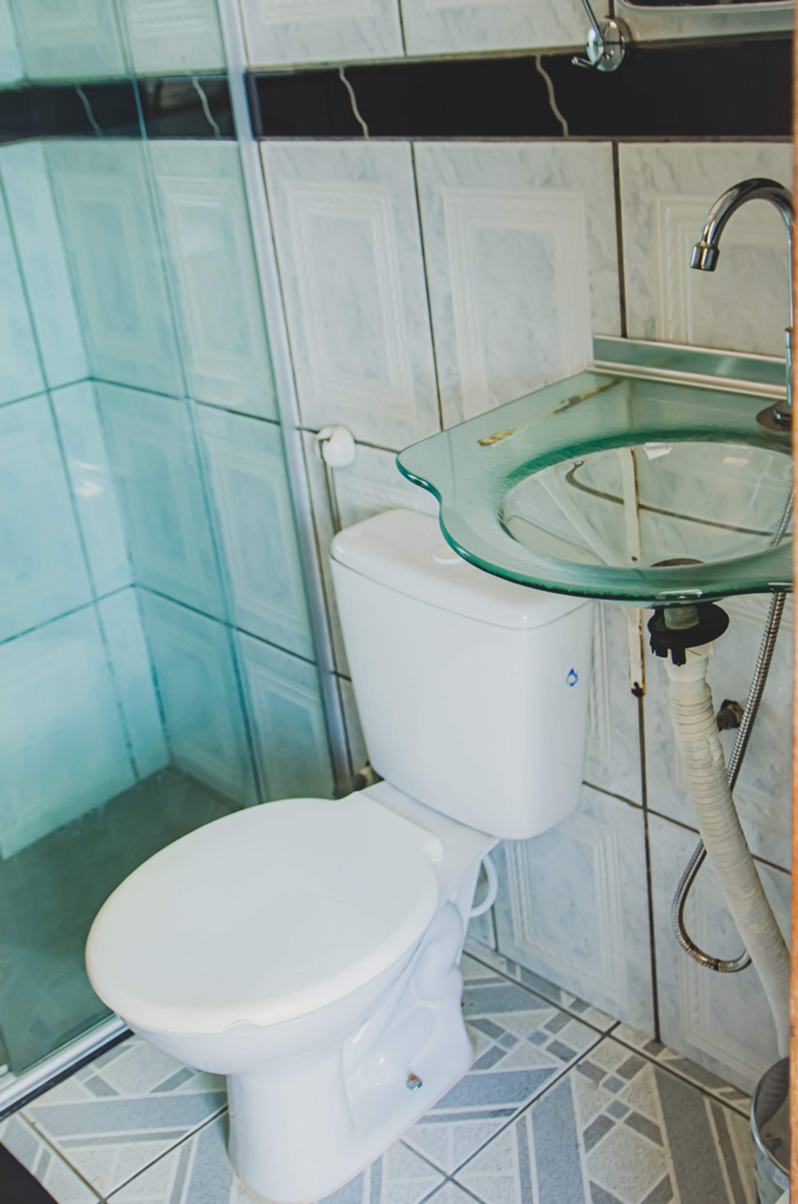 - Quarto 3 (suíte): 1 beliche, ar-condicionado, armário e banheiro privativo com chuveiro elétrico e box de vidro/acrílico