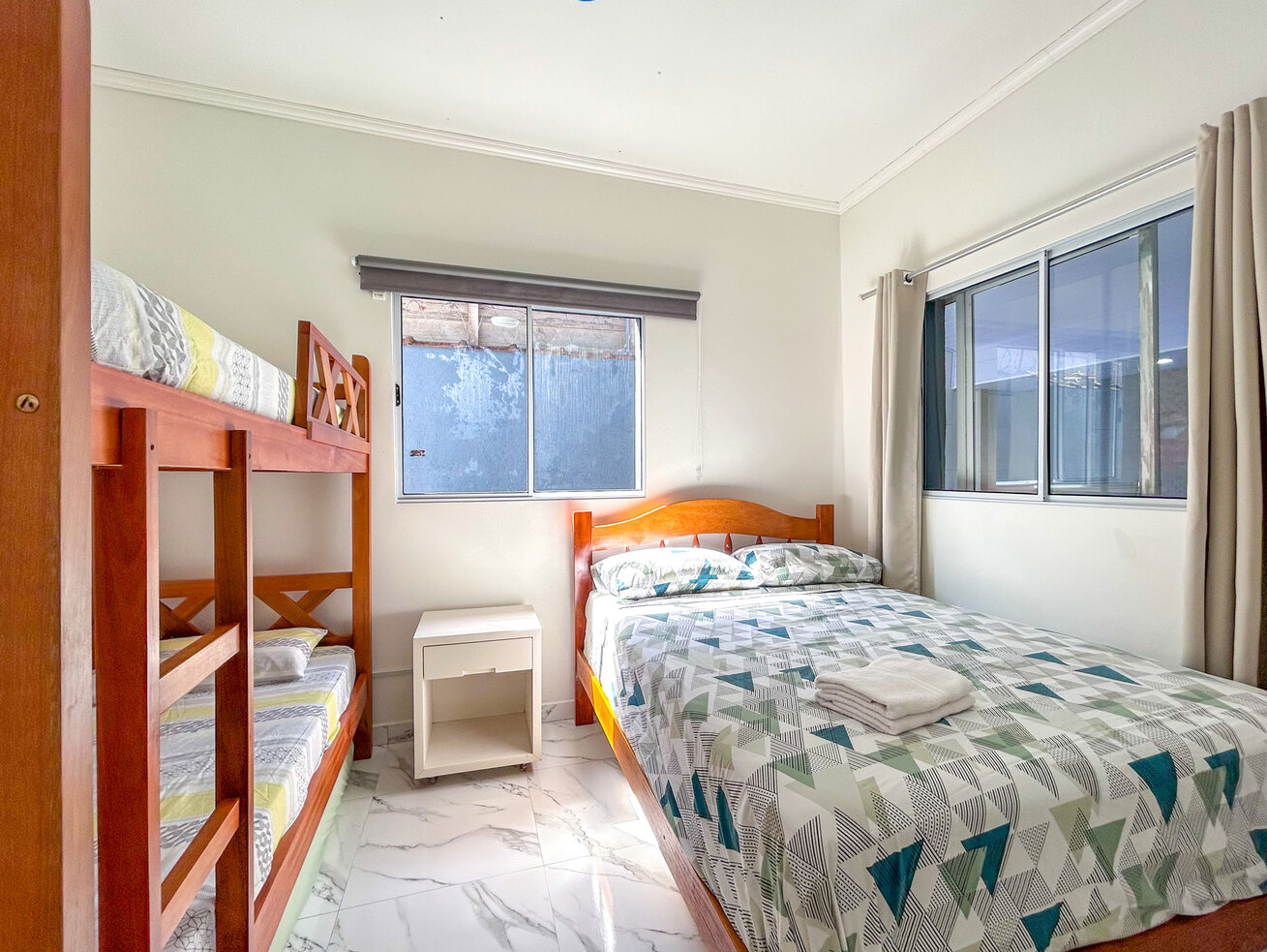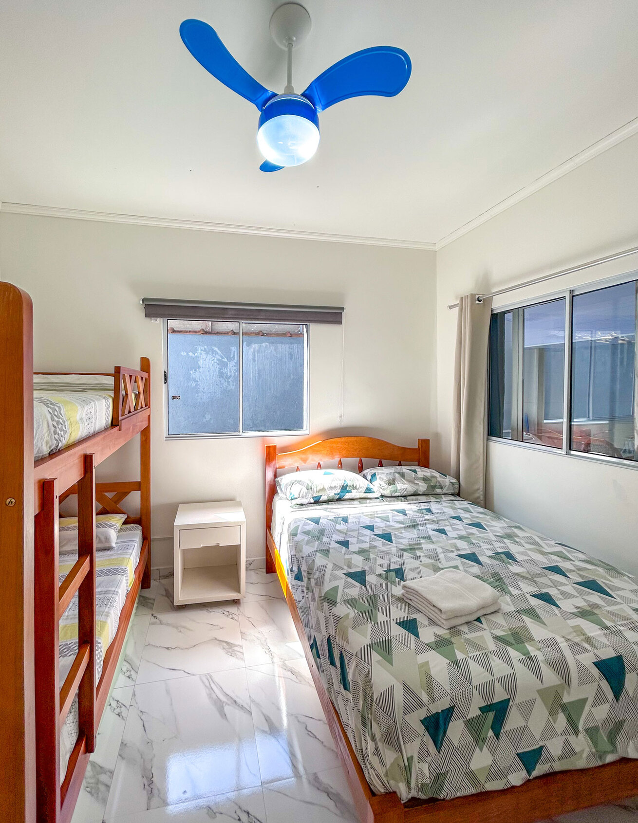 - O quarto é equipado com 1 cama de casal, edredom / cobertor, protetor de colchão e ventilador de teto