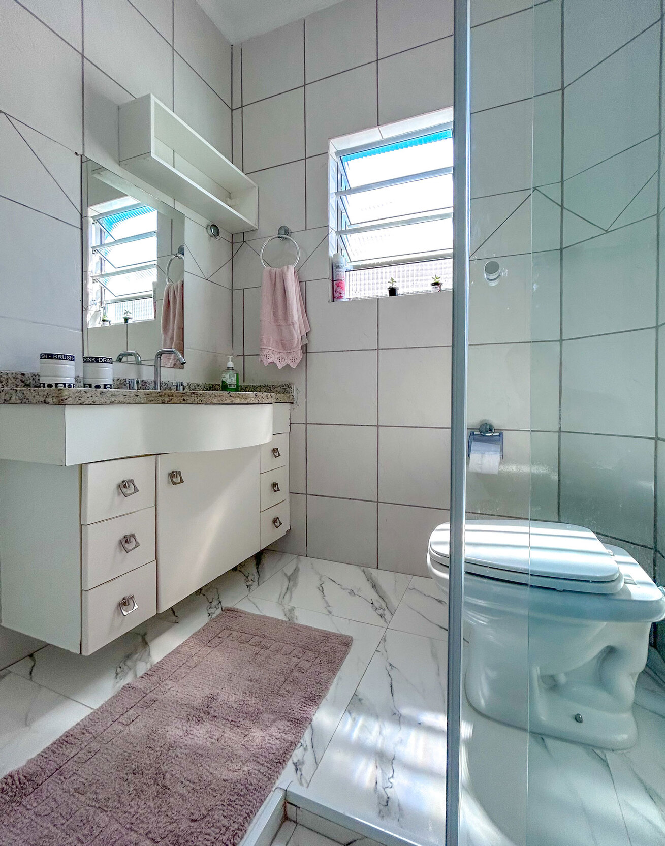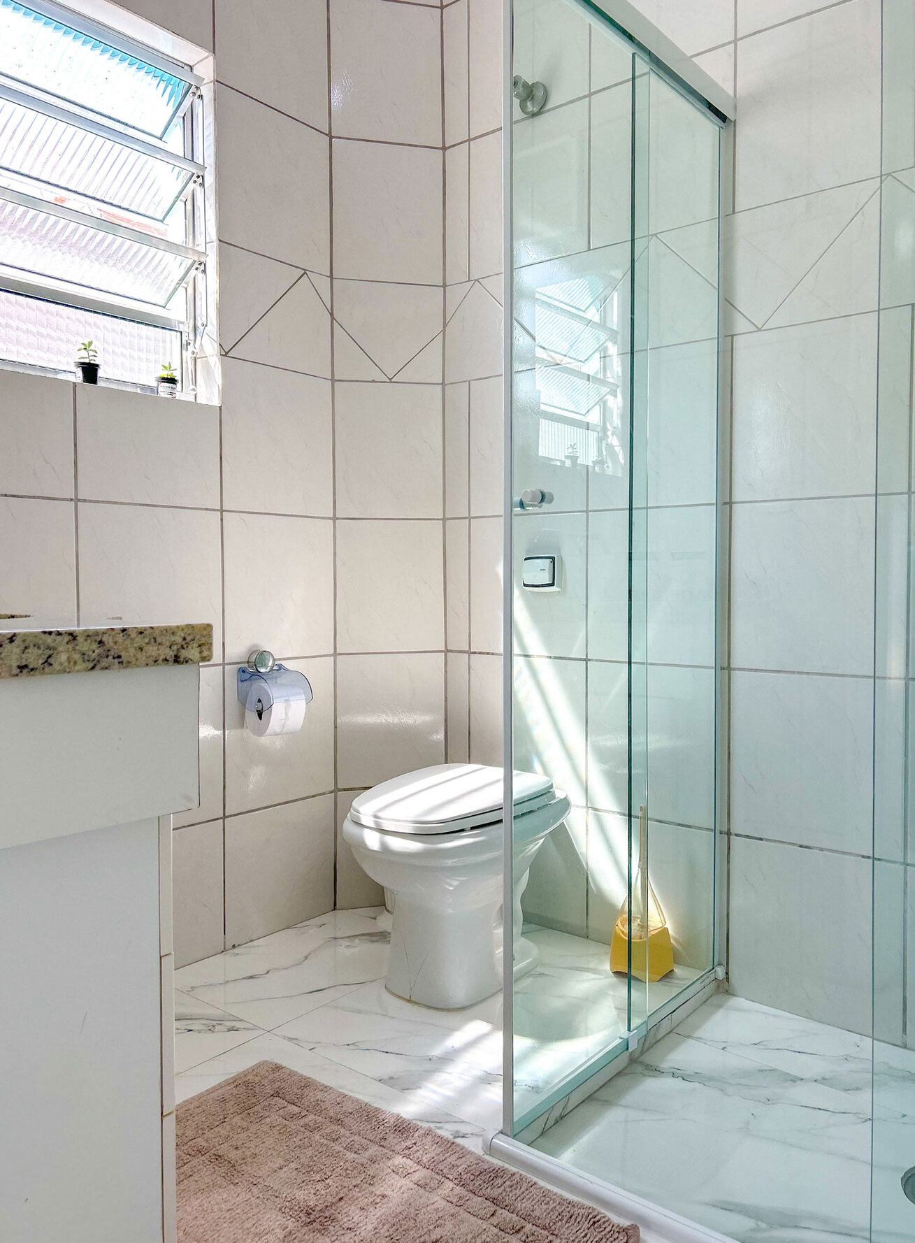 - O banheiro têm chuveiro elétrico e box de vidro/acrílico