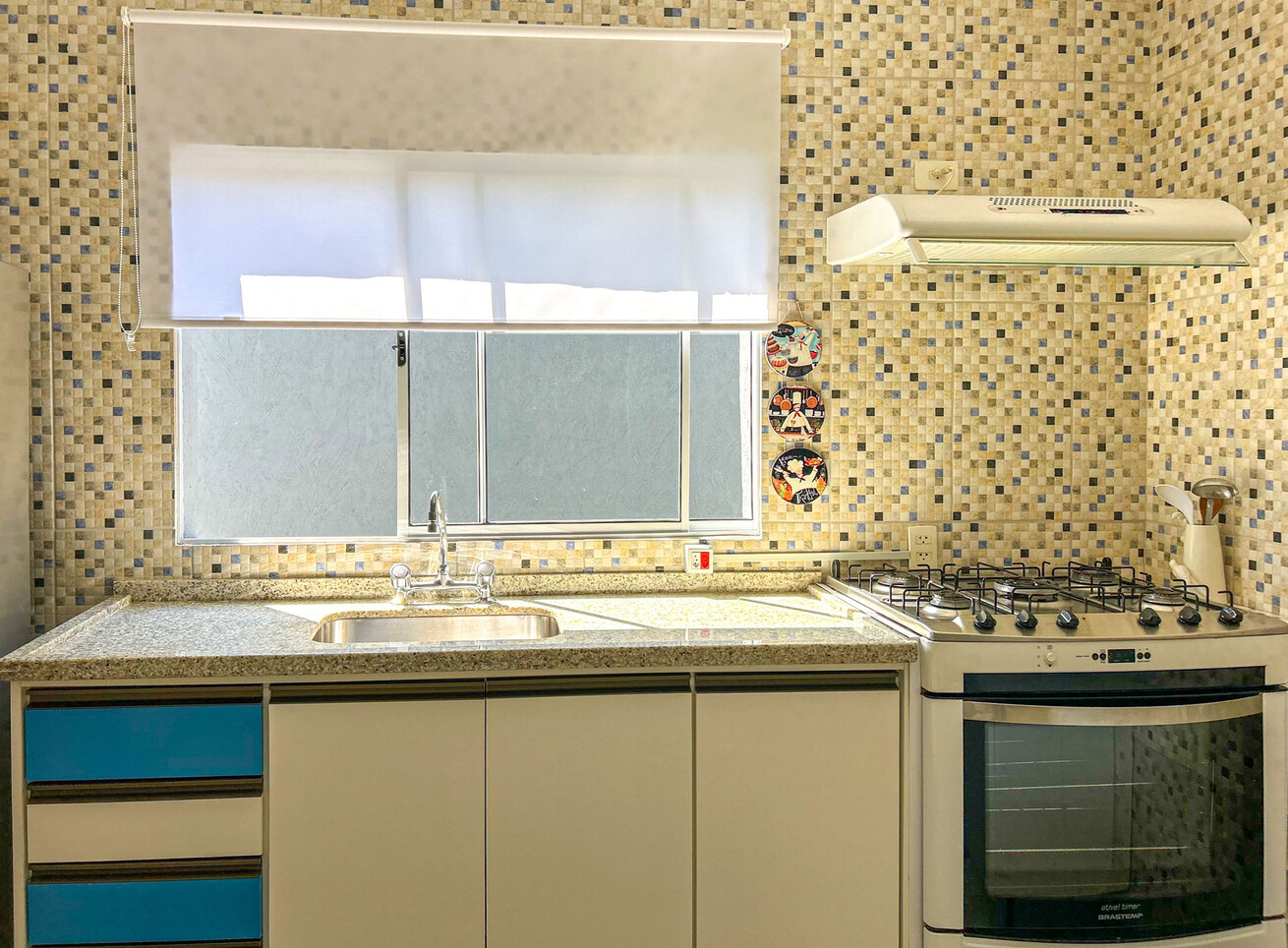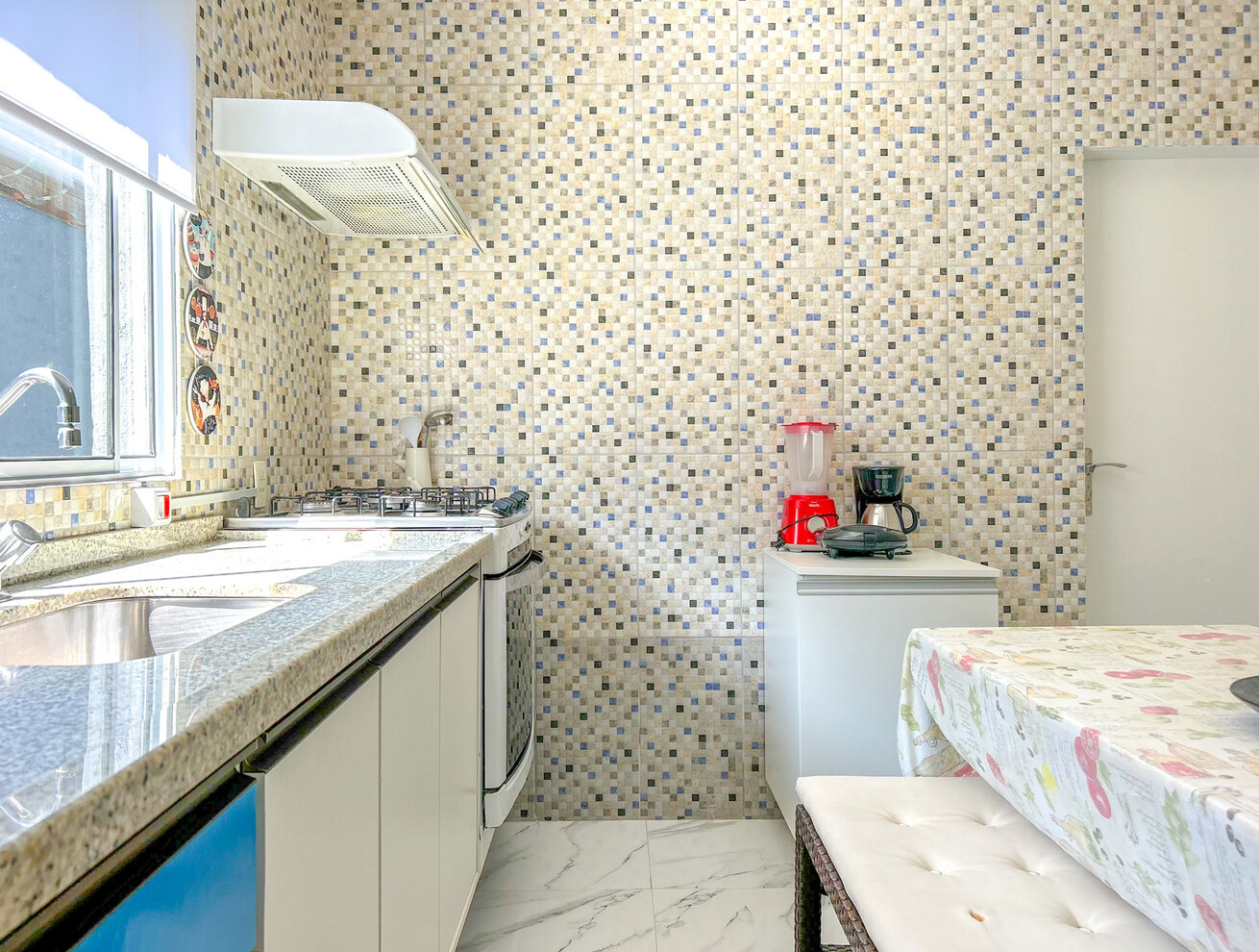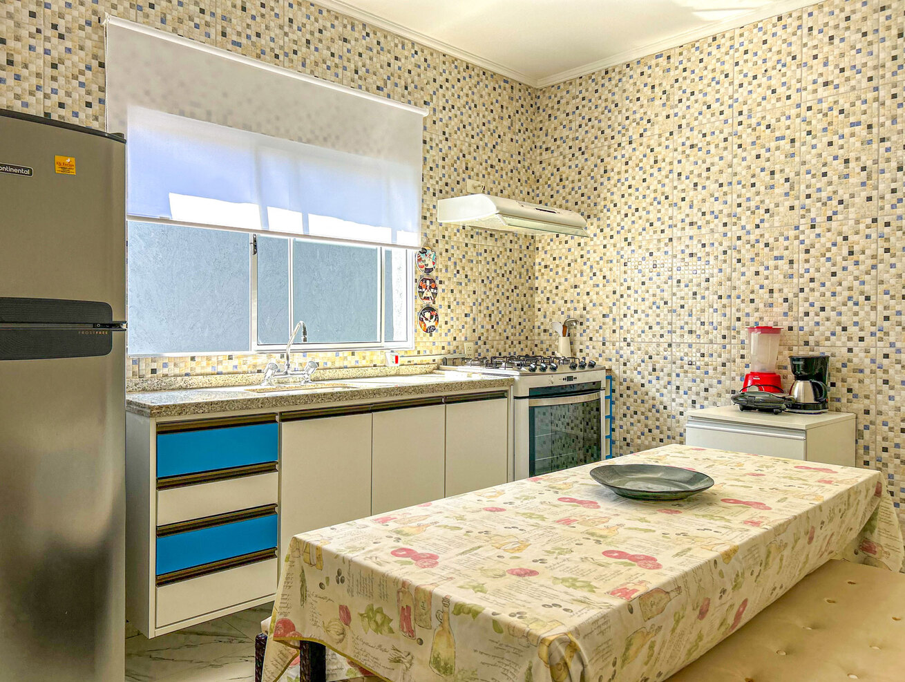 - A cozinha é equipada com todos os utensílios necessários para preparar ótimos pratos, incluindo fogão, geladeira, liquidificador, exaustor, cafeteira e sanduicheira