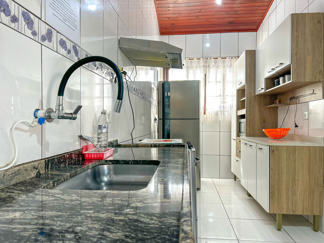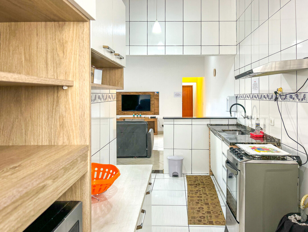 - A cozinha é equipada com todos os utensílios necessários para preparar ótimos pratos, incluindo fogão, geladeira, liquidificador, micro-ondas, cuscuzeira, panela de arroz elétrica e kit de churrasco