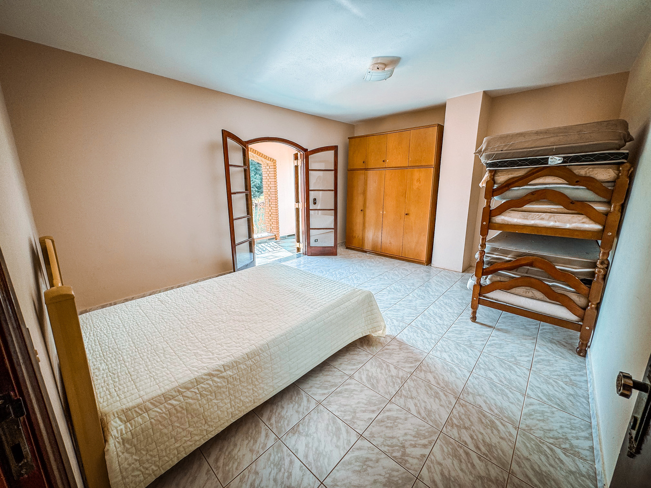 - No quarto 3 há 1 cama de casal e 1 beliche