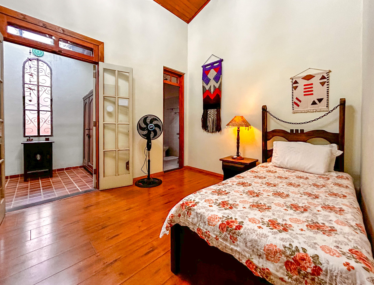 - As suítes possuem armário, cobre-leito, protetor de colchão, ventilador de teto ou portátil, chuveiro elétrico e box de vidro/acrílico