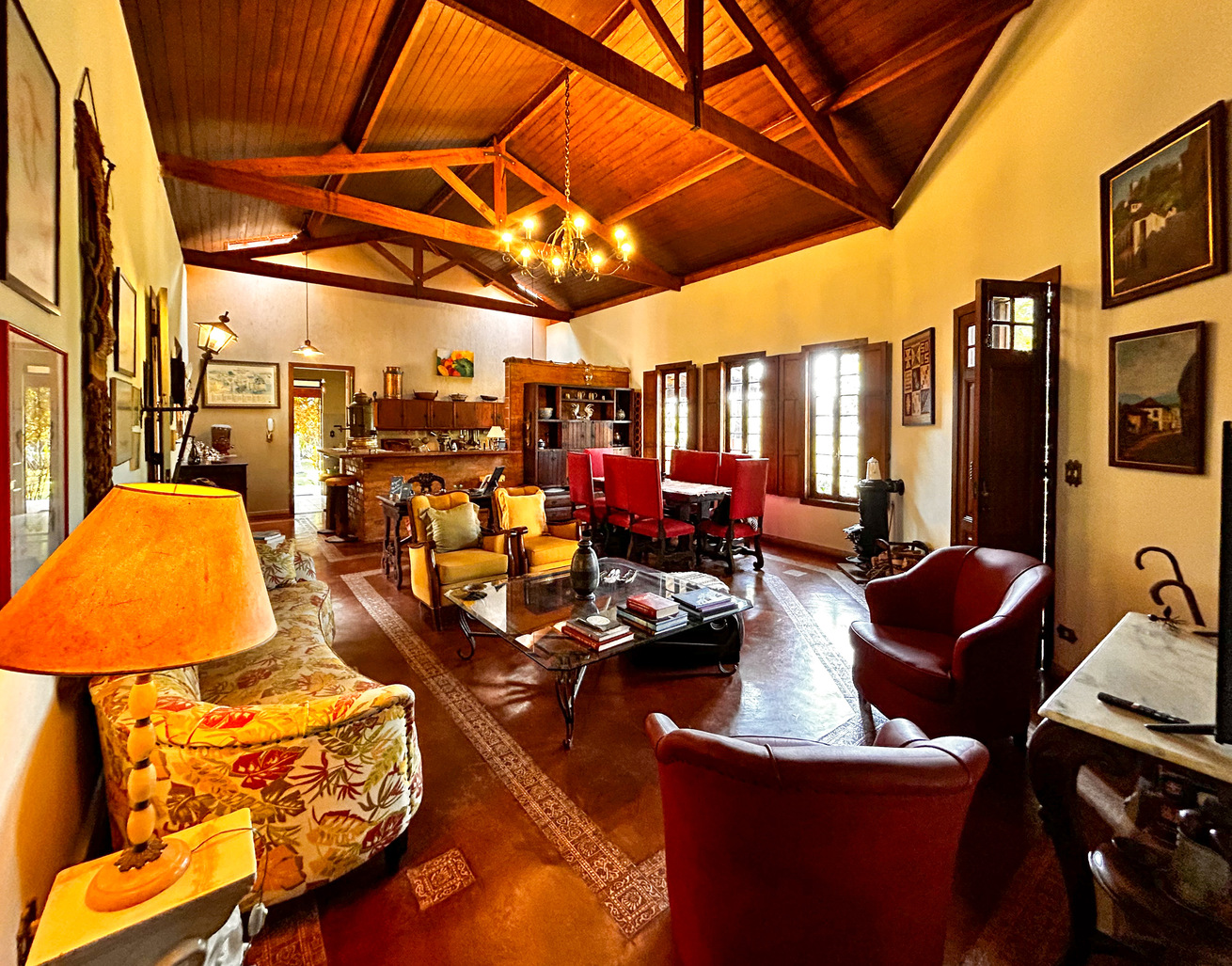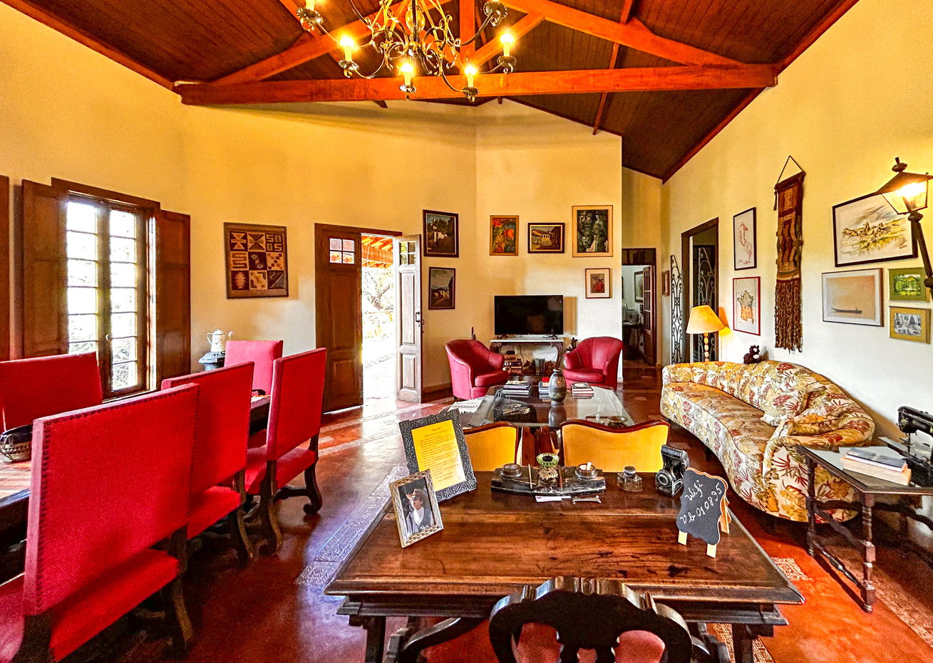- A sala é bem confortável e nela você encontra cadeira, mesa de centro, poltrona, rádio, sistema de som e sofá