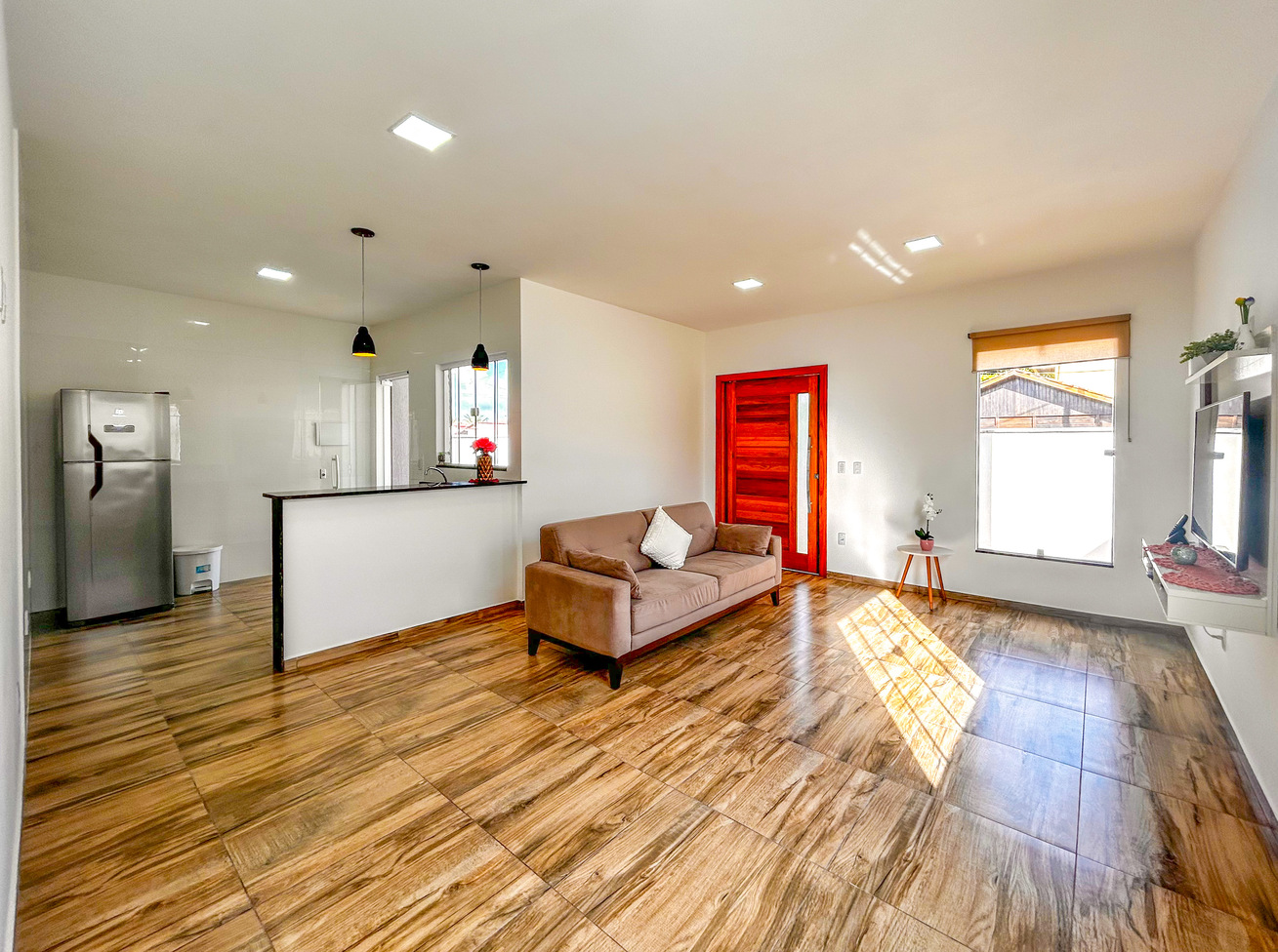 - Na sala você encontra sistema de som, sofá e Smart TV a cabo