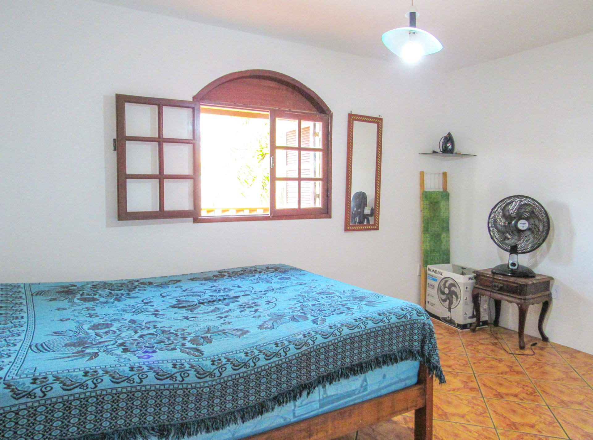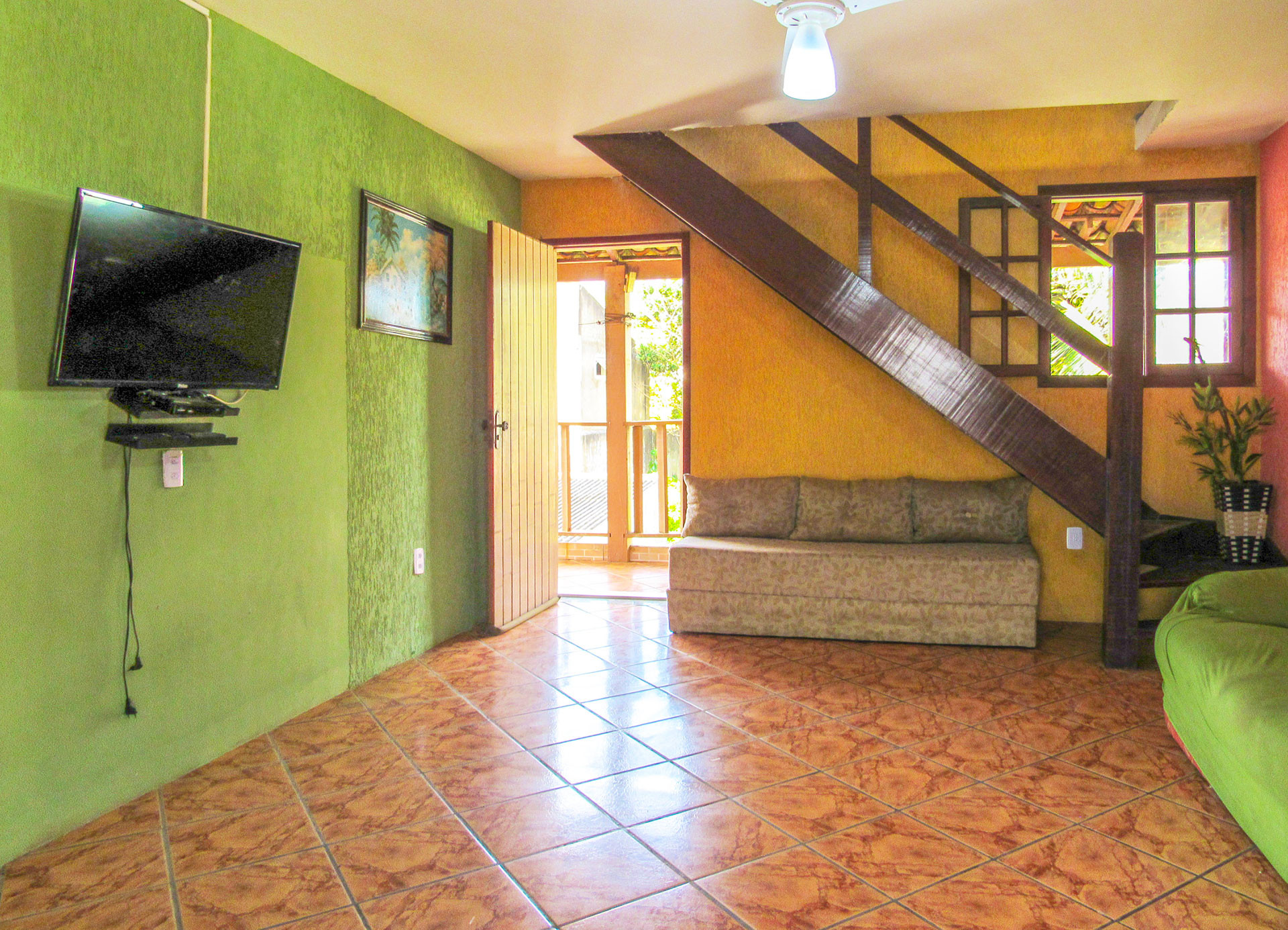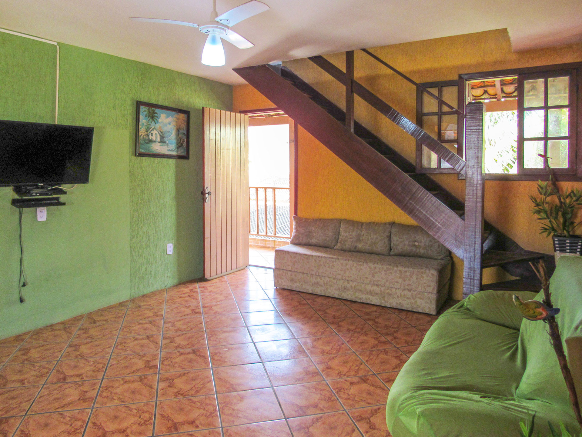 - Sala de estar super arejada com acesso às 2 varandas (da frente e dos fundos com vista para o mar), sofá-cama e ventilador de teto