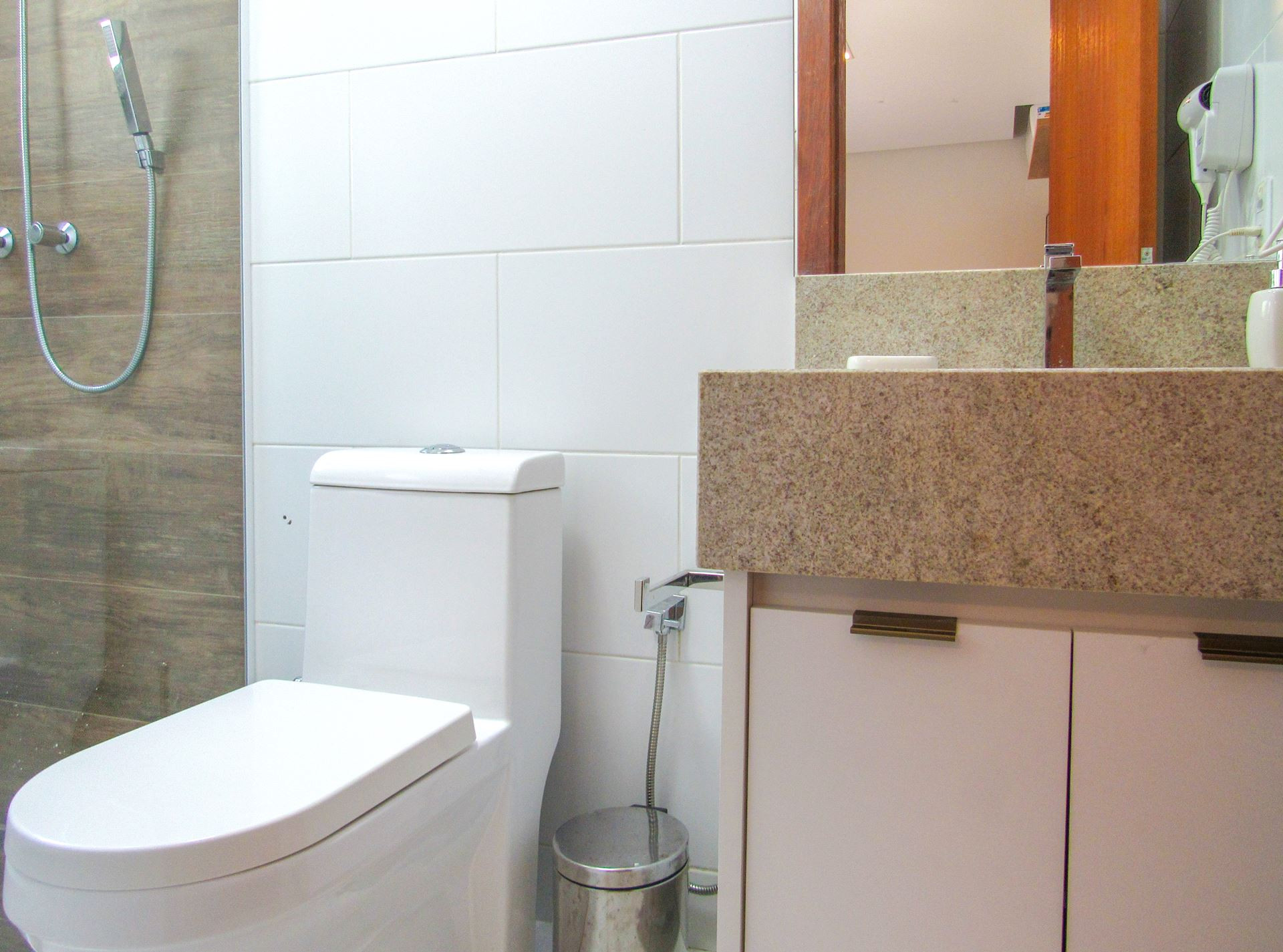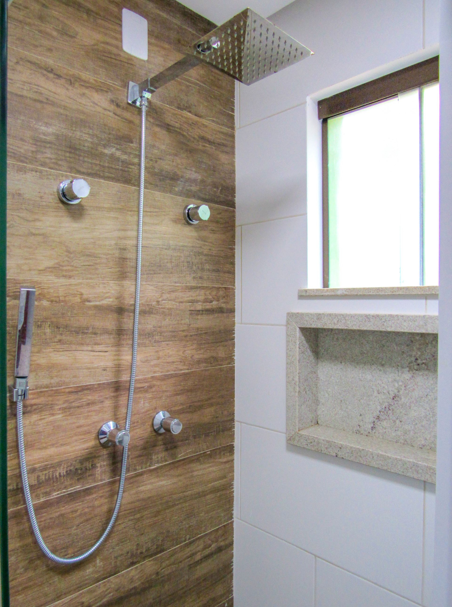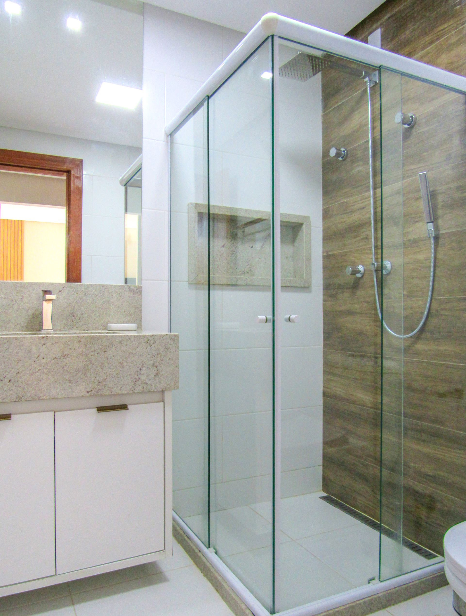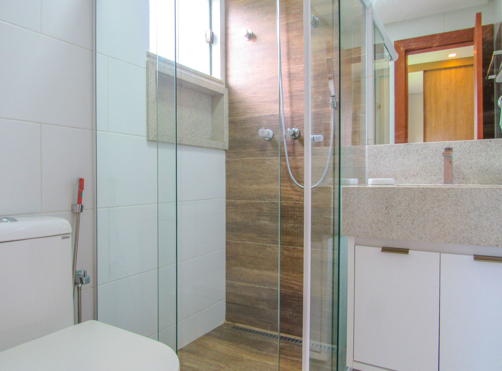 - Os banheiros têm chuveiro a gás e box de vidro/acrílico