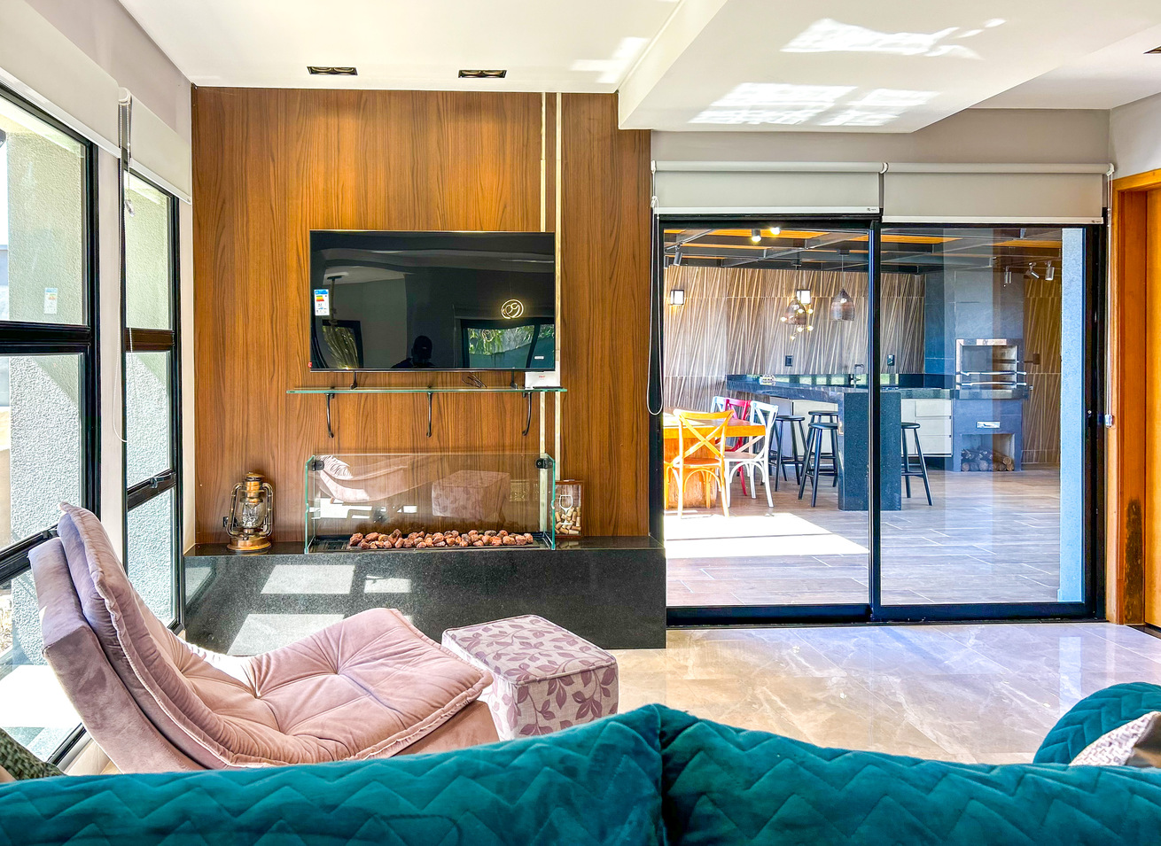 - Sala ampla com Smart TV, lareira, poltronas e aquecimento