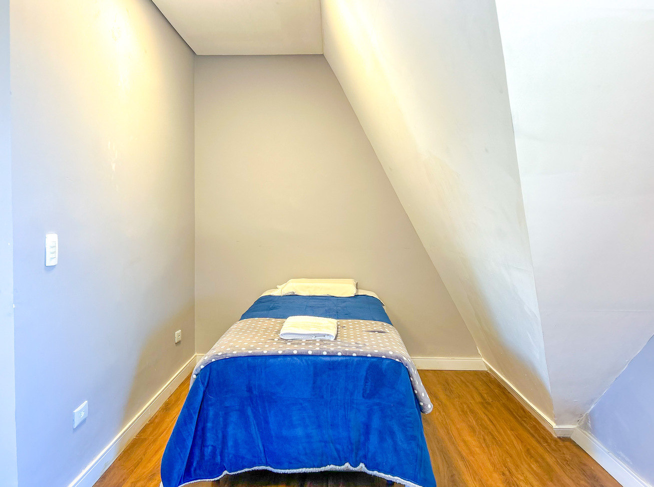 - Na suíte 3 há 1 cama queen size e 1 cama de solteiro, aquecimento, varanda, edredom/cobertor e banheiro privativo com chuveiro a gás e box de vidro/acrílico.