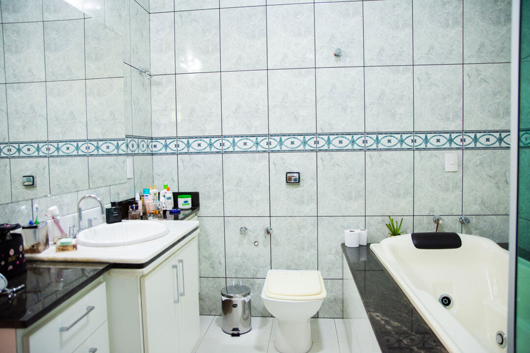 - Na suíte 1 há 1 cama queen size, chuveiro com aquecimento solar, box blindex e banheira de hidromassagem