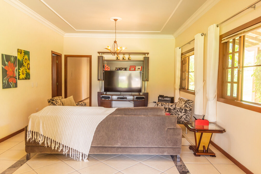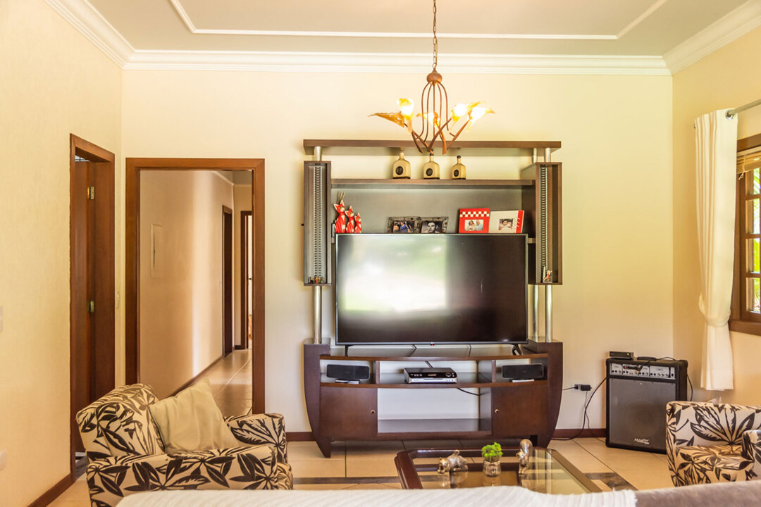 - Na sala você encontra cadeira, mesa de centro, poltrona, sofá e TV a cabo